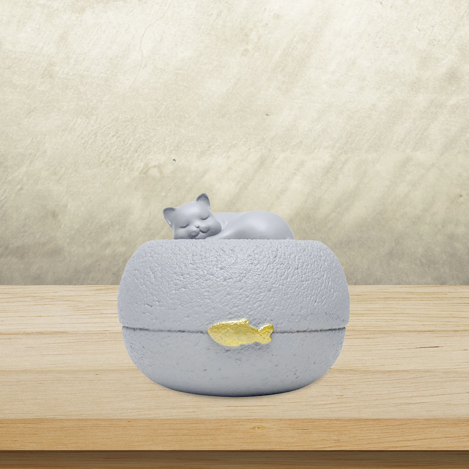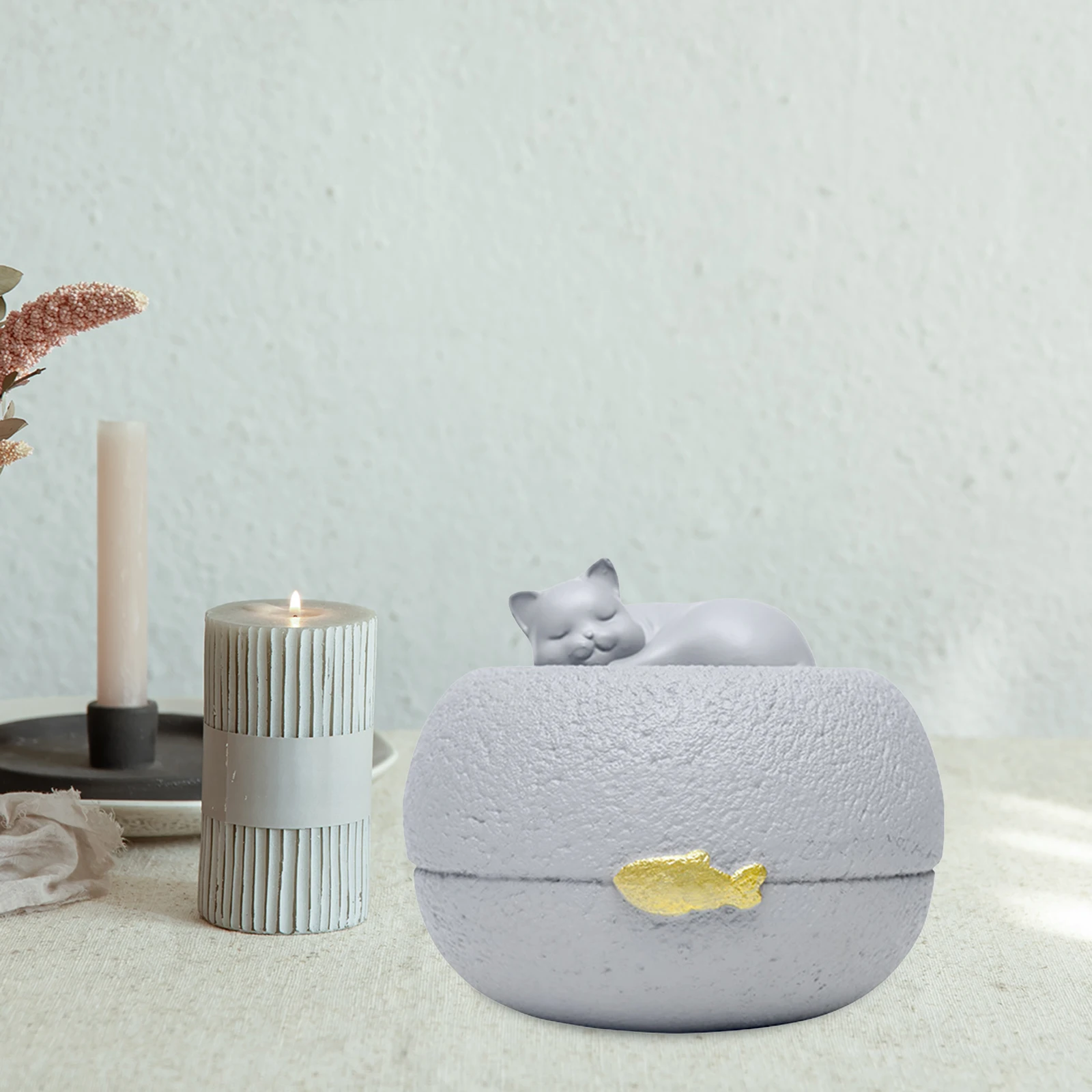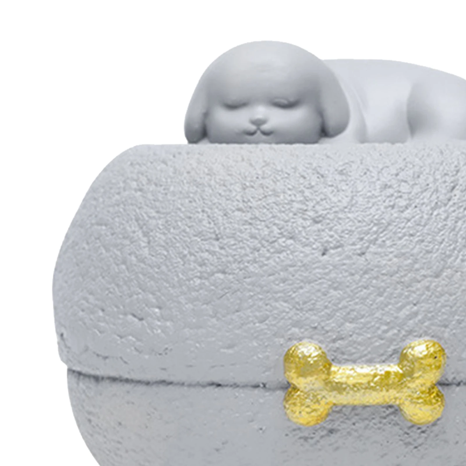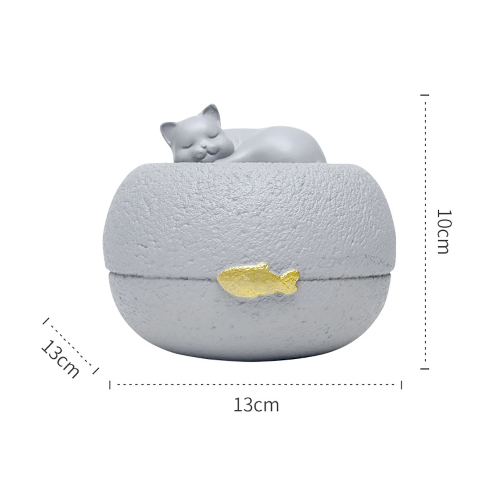 【Product Dimensions】: The size of this creative sleeping pet ash box is 13cmx13cmx10cm/5.12inchx5.12inchx3.94inch, making it compact enough, portable and lightweight, keep the beloved pet in our hearts and lives forever.