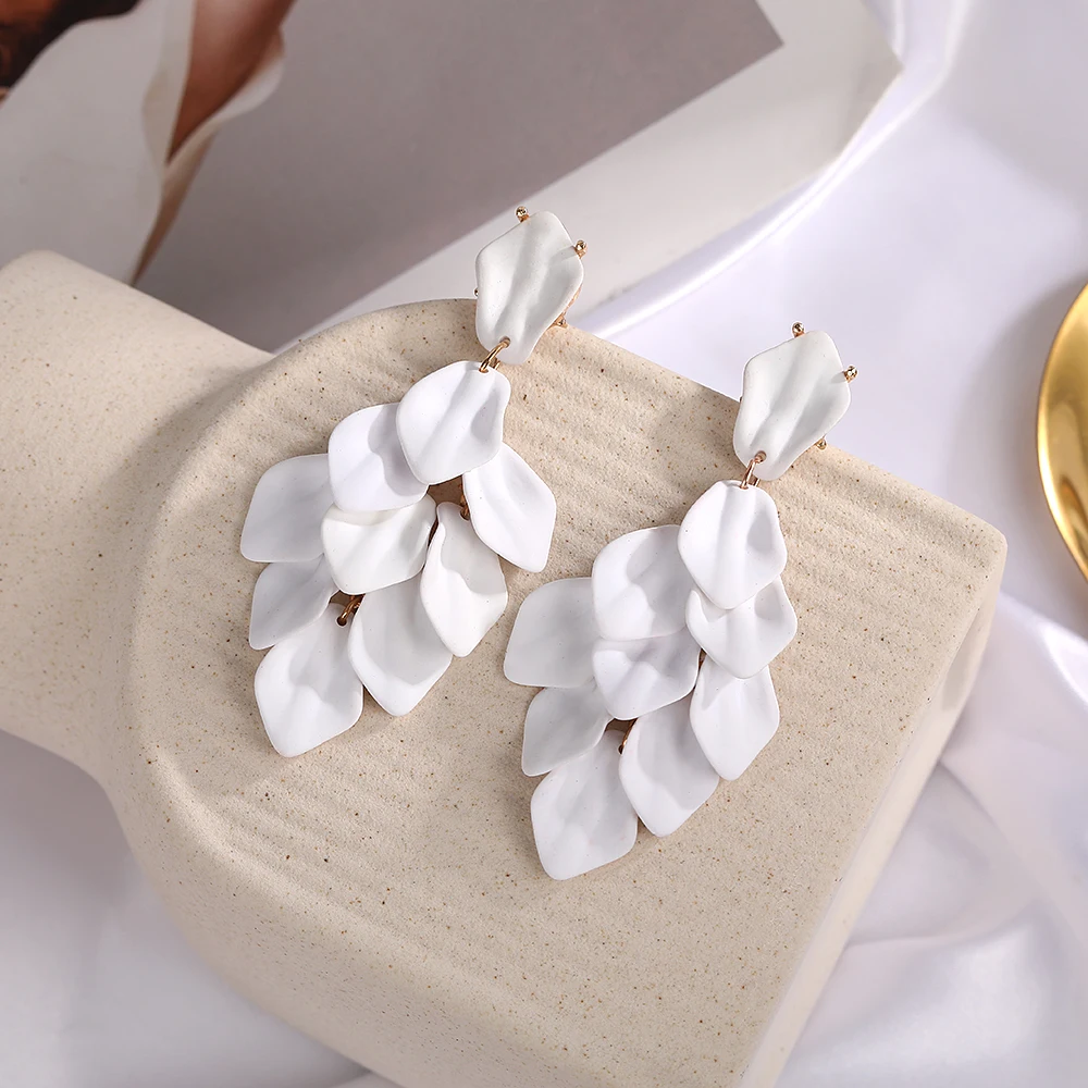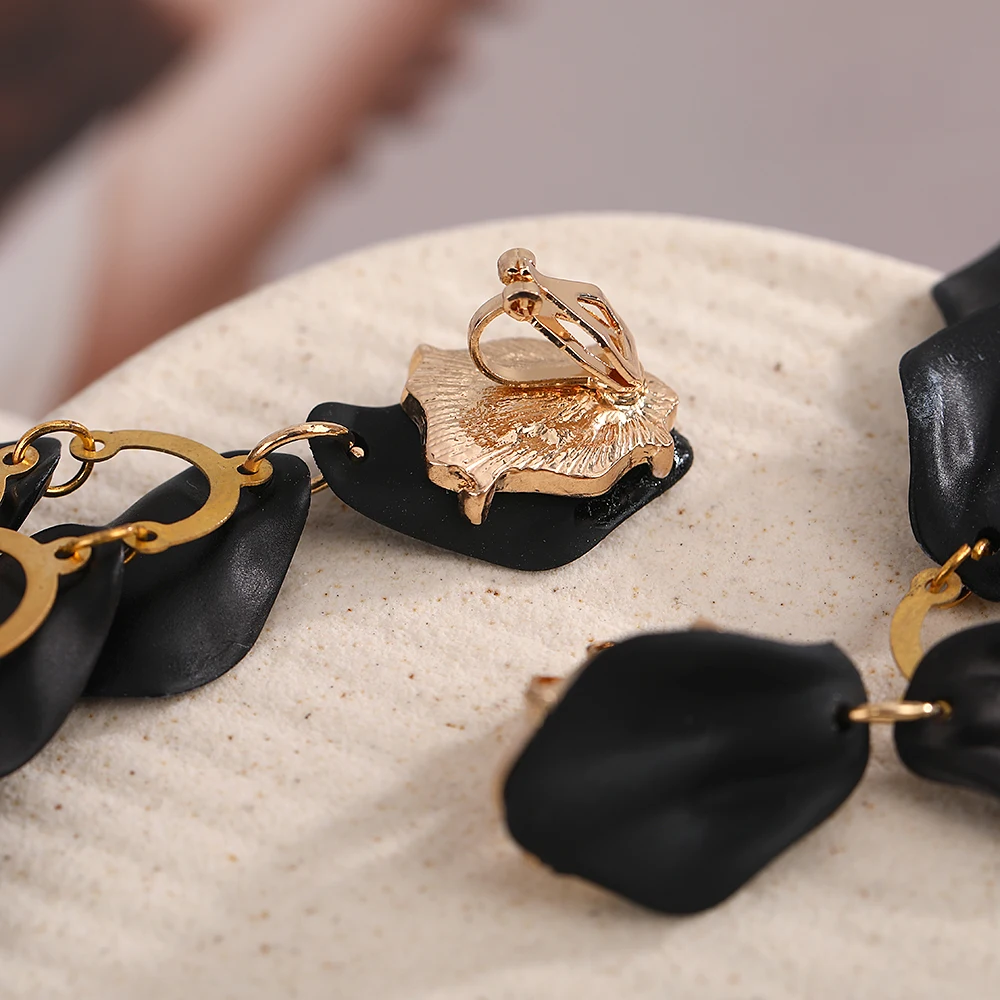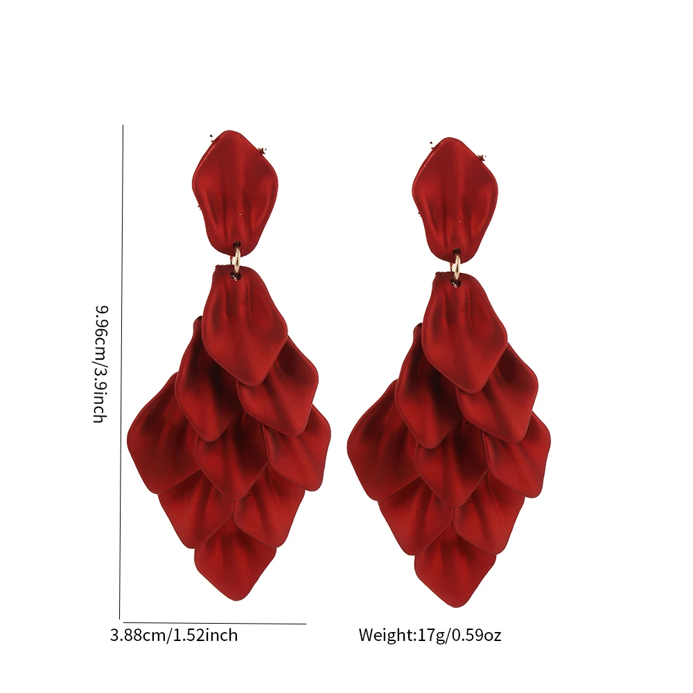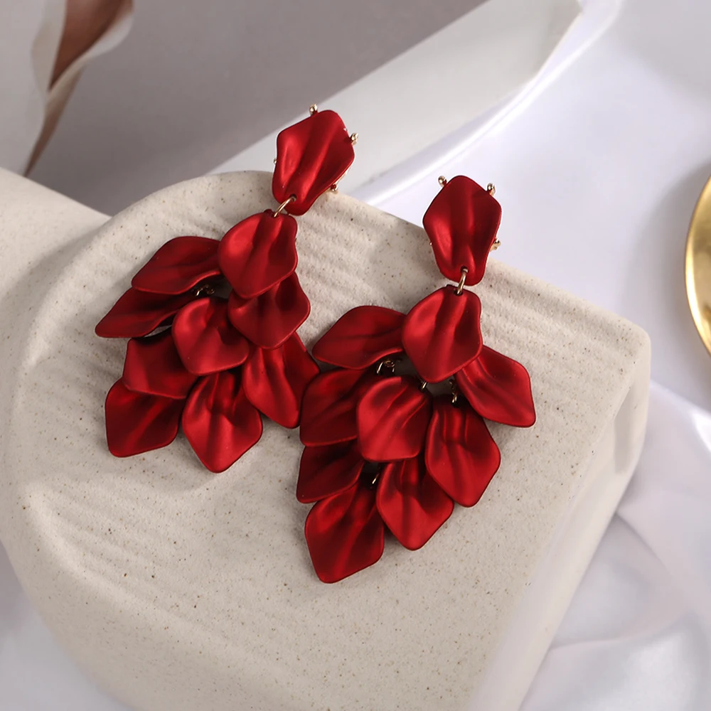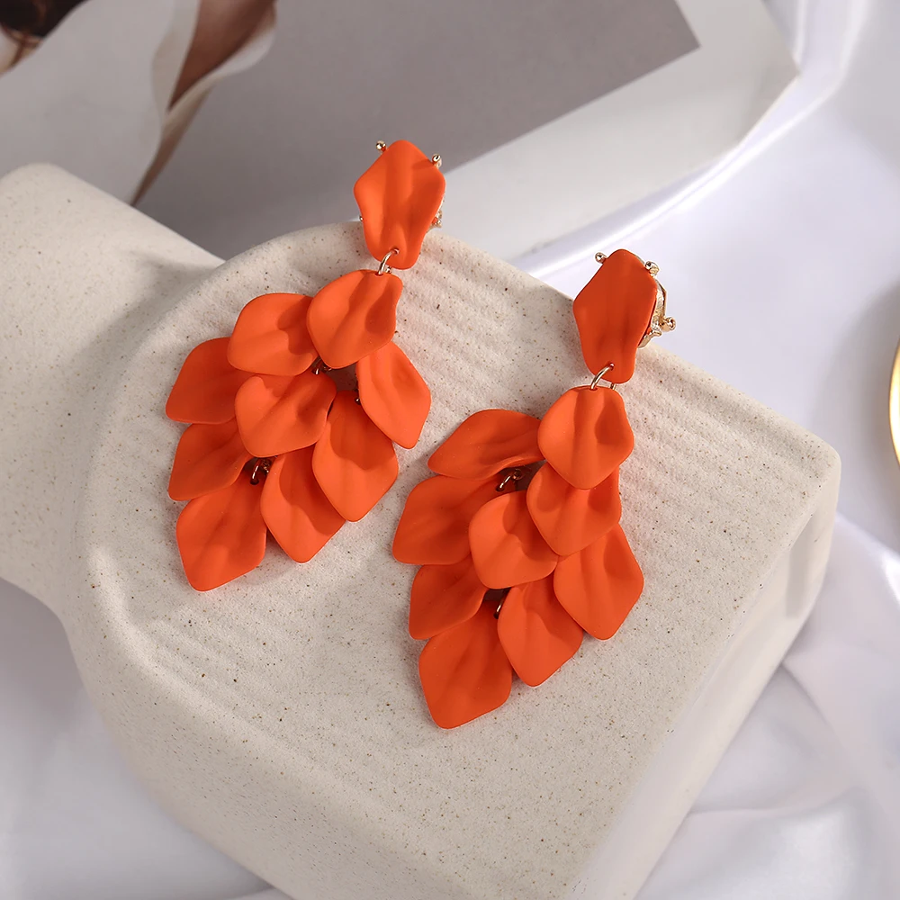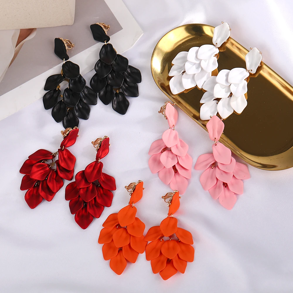 Petal Tassel Clip Earrings for Women Exaggerated Design Light Luxury Earrings Personalised High Sense Niche Red Jewelry Gift