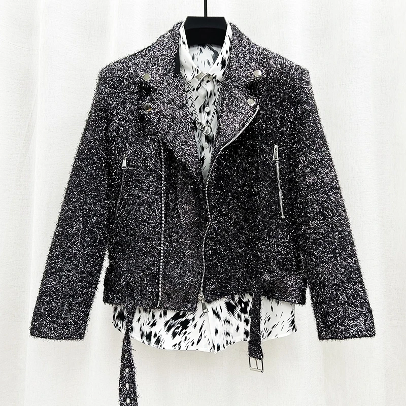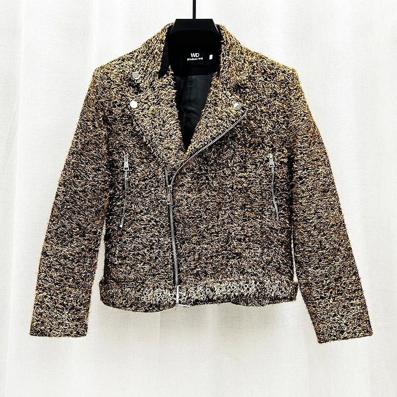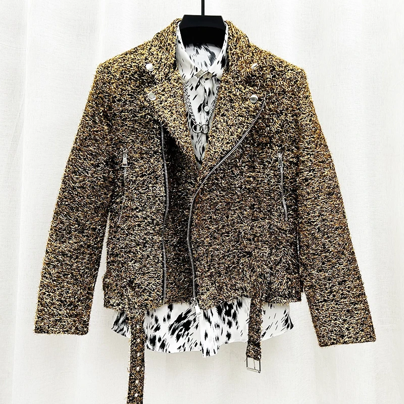 PFHQ Heavy Industry Shining Shiny Silk Jackets Men’s Loose Short Light Luxury Zipper Small Fragrant Delicacy Coat Autumn 21Z2839