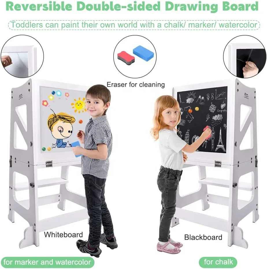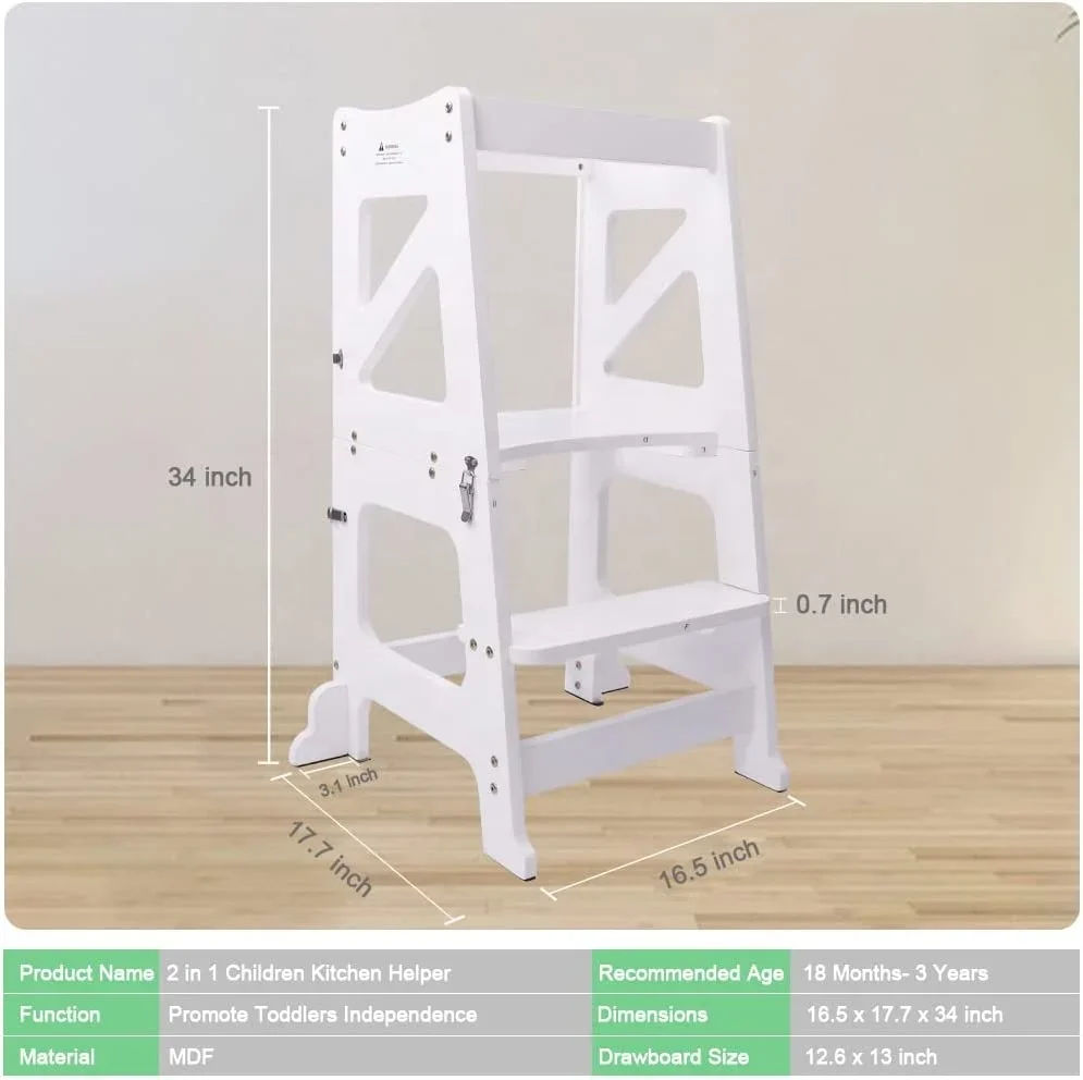 Phoenix Home Learning Tower Folding 2 Step Kitchen Wood Kids Step Stools with A Tablet