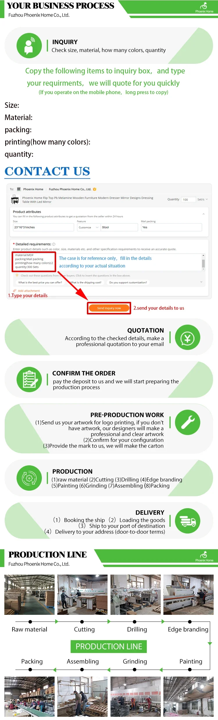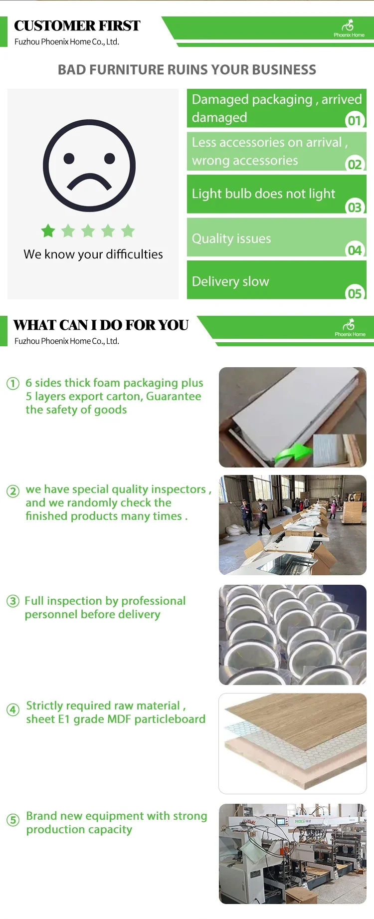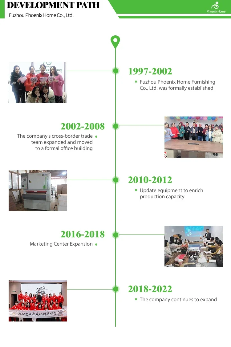 Fuzhou Phoenix Home Co.,Ltd is a professional and comprehensive enterprise and is one of the leading exporters and importers in China with extensive experience in foreign trade and domestic business. Our hold company has been engaged in the business of furniture design, production, and sale of indoor furniture and wooden crafts. Our products, distributed in the markets of Europe, the United States, Japan and Korea. In 2009 Construction Was Completed On Our New Headquarters Complex Housing Our Headquarters Offices, Product Showrooms, Product Development Center, Quality Assurance, Testing Lab, Mold Shop And Staff Training Center. We have our own factory. Our Headquarters Complex Located In Fuzhou Includes A New 1,000 Square Meter Office Building with 1000 Square Meter Showroom And A New 25,000 Square Meter Factory Building With Over 120 Workers. The Primary Production Capacities Are wooden furniture, indoor furniturebent wooden furniture, children furniture, wooden& MDF crafts. We accept OEM/ODM orders Our Factory Also Serves As A Central Staging Area And QC Checkpoint For The Final Assembly And Packaging Of Semi-Finished Products.We all staff together hope to make great efforts for your satisfaction! If you are interested in any of our products or would like to discuss a custom order, please feel free to contact us. We are looking forward to forming successful business relationships with new clients around the world in the near future.