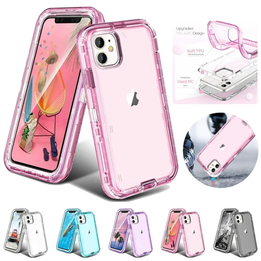 360 Full Protection Heavy Duty Case 3-Layer Hard Defender Transparent Clear Shockproof Phone Cover For New Apple iPhone 15 Pro Max 14 Plus 13 12 11 XS Max XR 87 Plus 6S