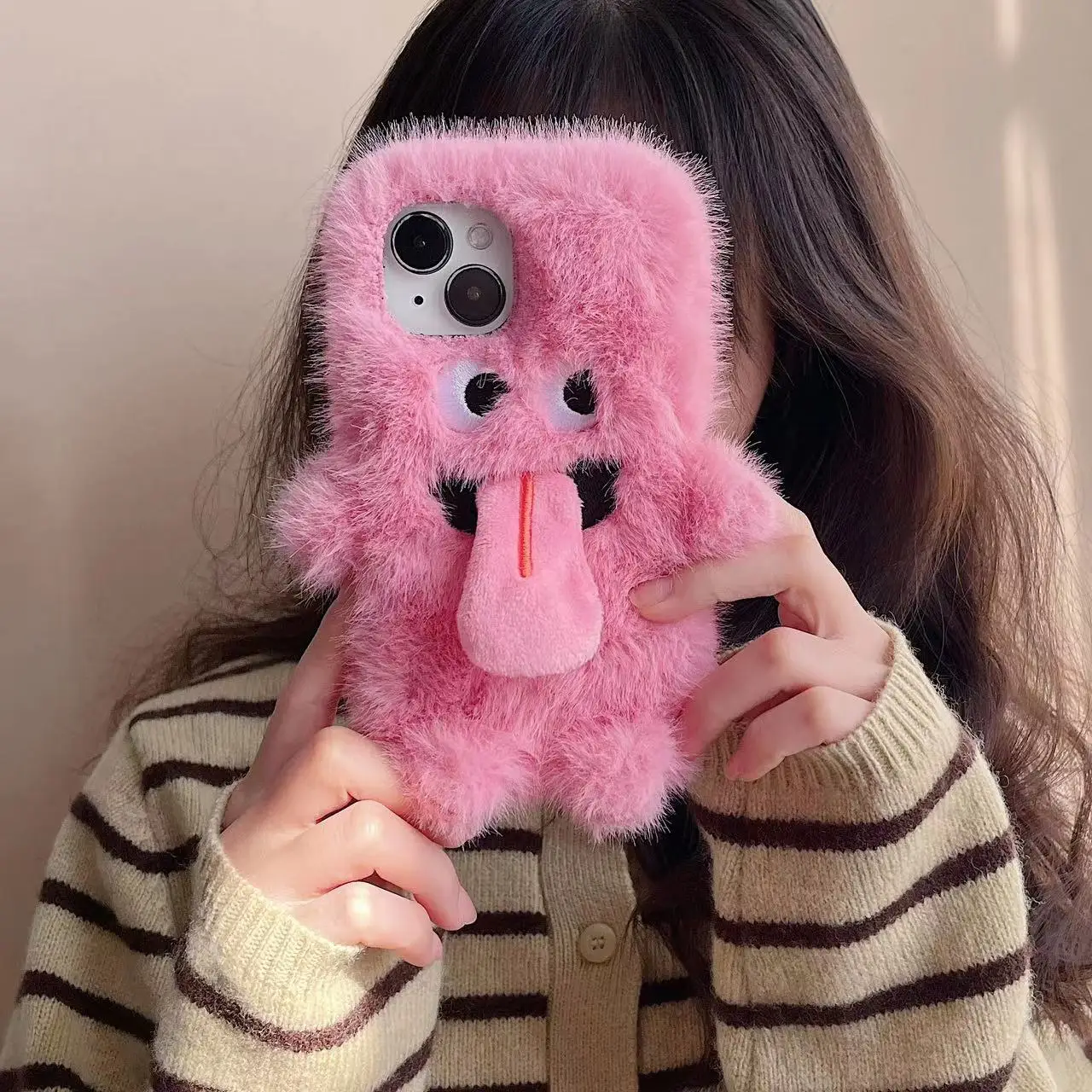 Phone Cases for Couples Plush Tongue Apple for IPhone16 15 14 13 11 12 Pro Max Mini Plus Case Soft Winter Autumn Shockproof