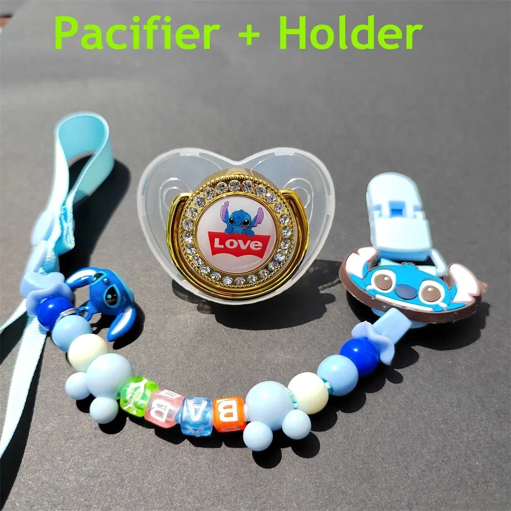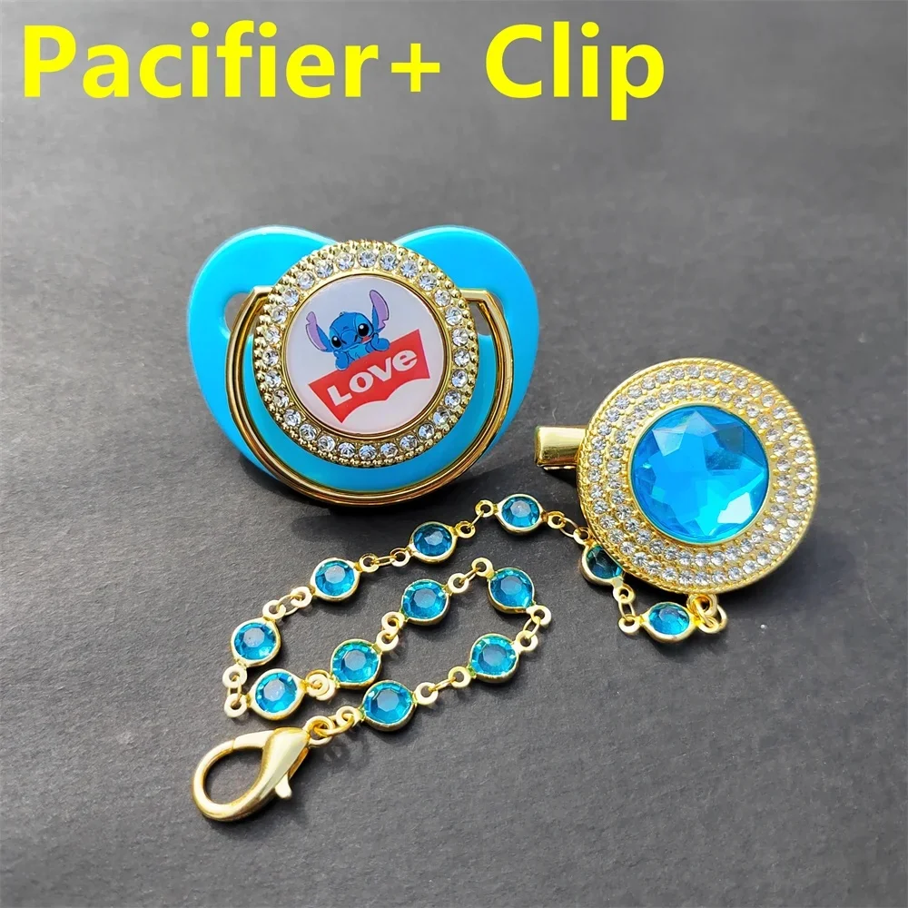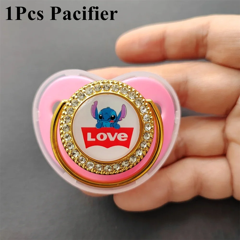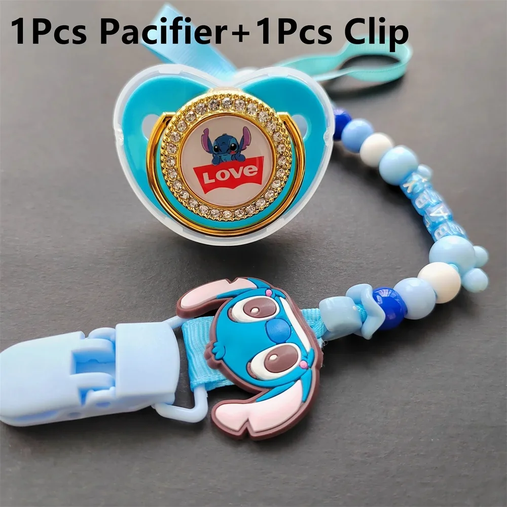 [Photo taken] Cartoon Stitch Baby Pacifier Clip Cover Rhinestone Luxury pacifier Newborn boy silicone nipple Baby shower gift