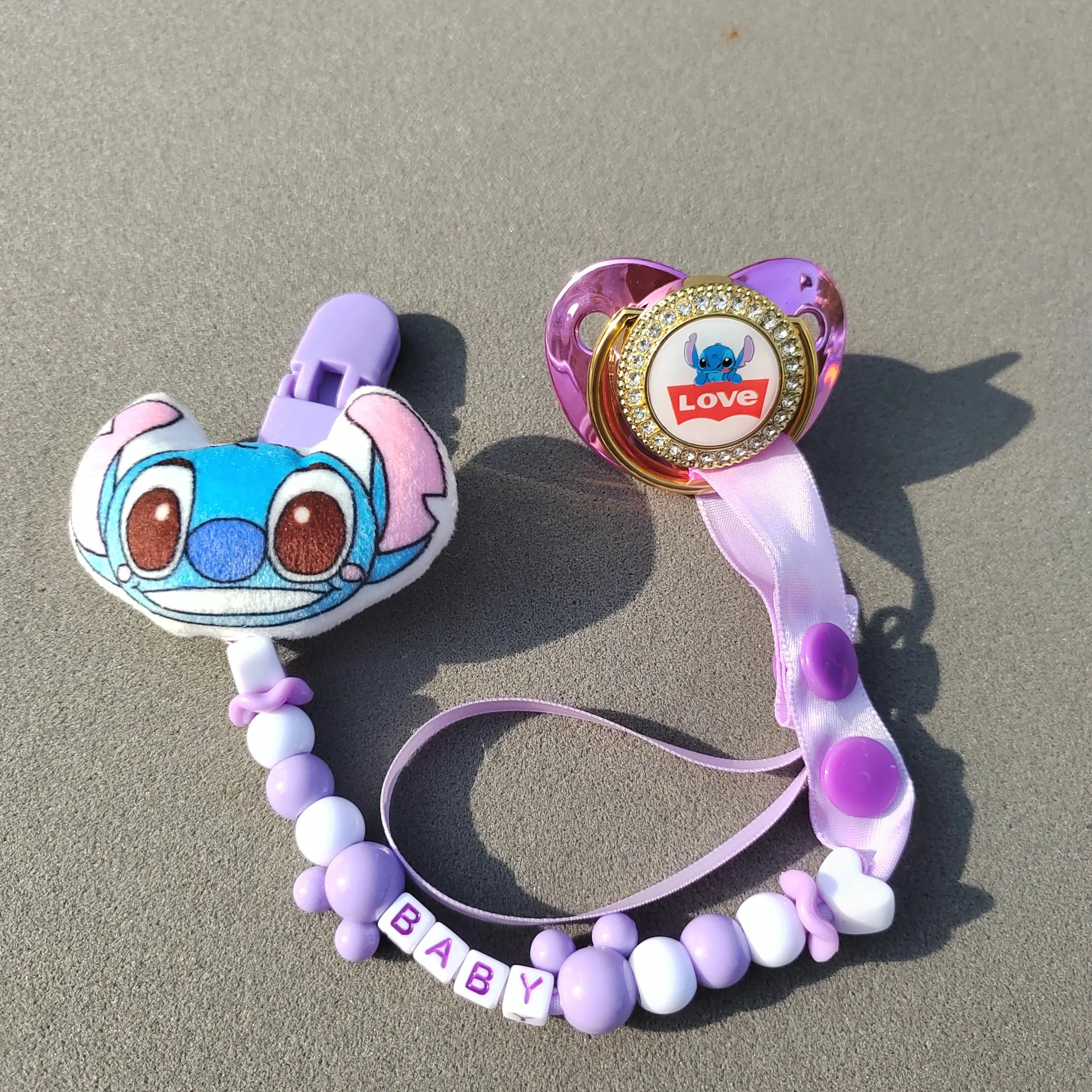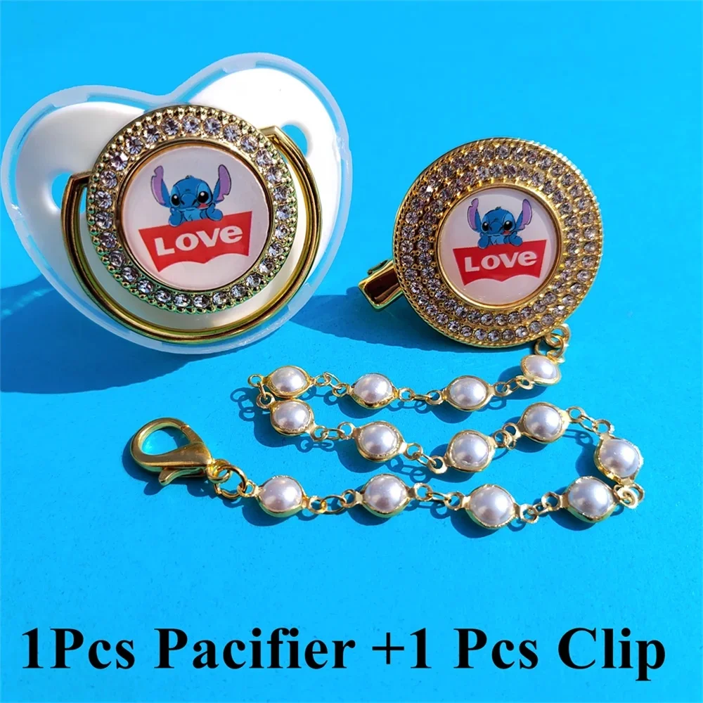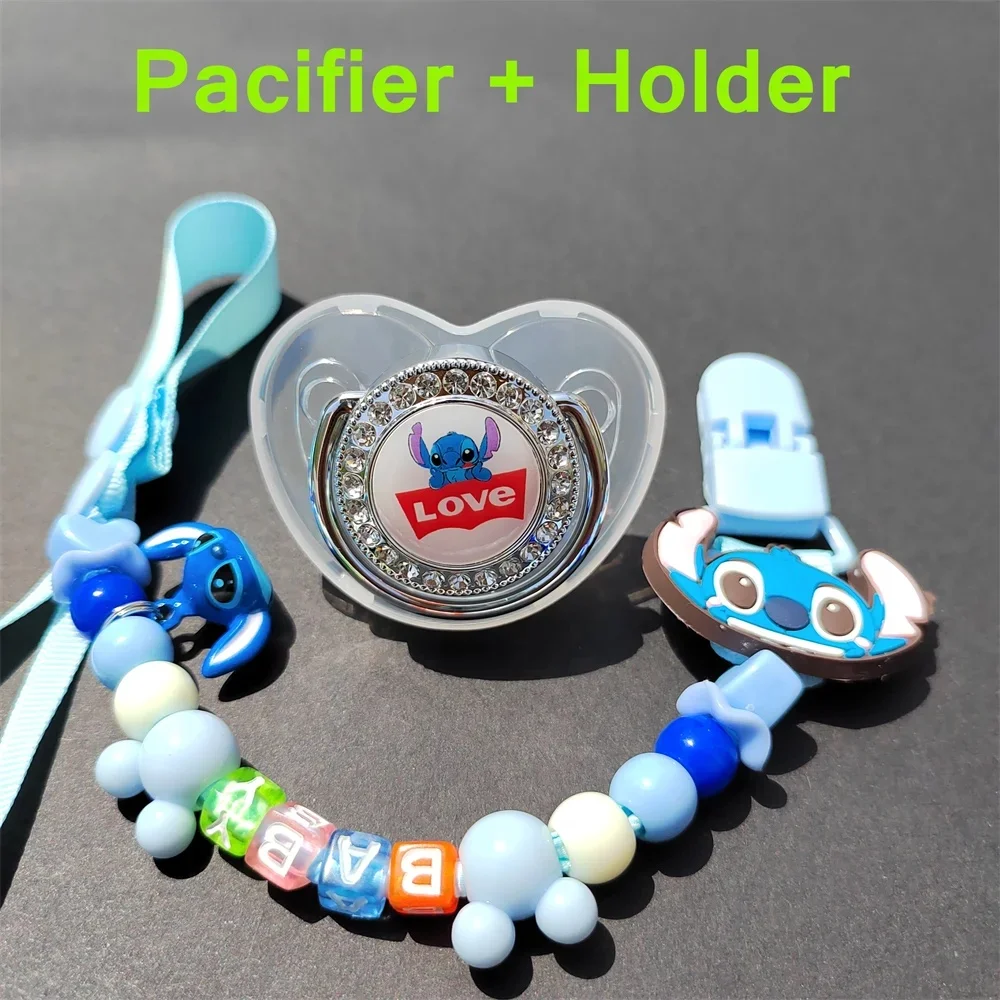 [Photo taken] Cartoon Stitch Baby Pacifier Clip Cover Rhinestone Luxury pacifier Newborn boy silicone nipple Baby shower gift