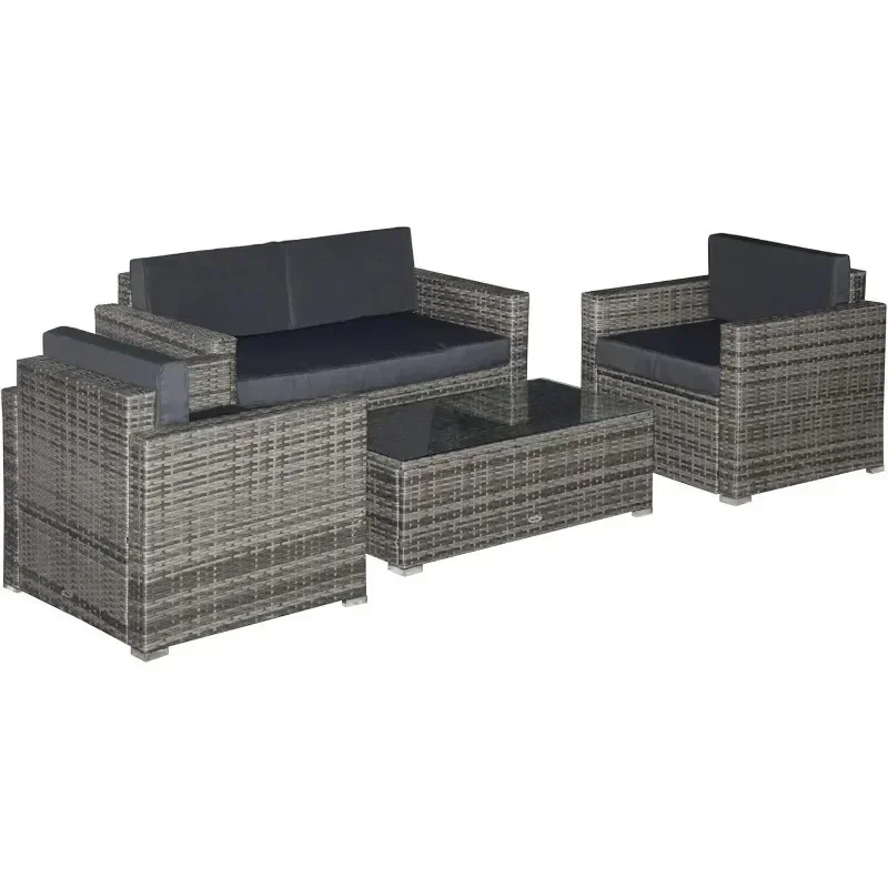 - Four Piece Sofa Set: Our garden sofa set includes A loveseat, two single sofas, and a matching coffee table for four-person seating. The pieces can be rearranged into various configurations. Create a relaxing setting for board gaming, a family reunion, or a film. It’s an instant upgrade for an atrium, terrace, deck, patio, pool, porch, garden, or balcony.
