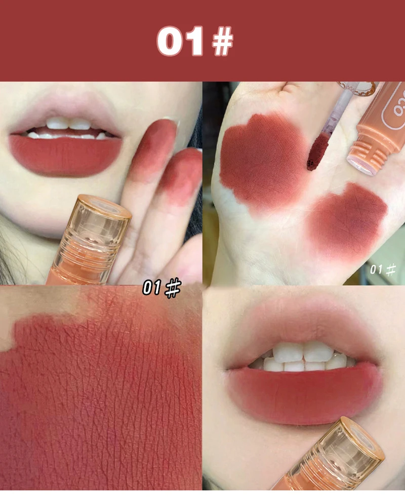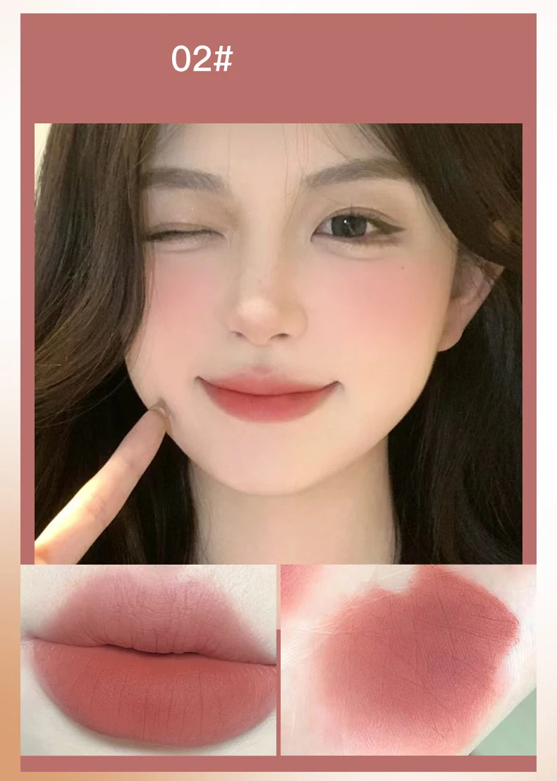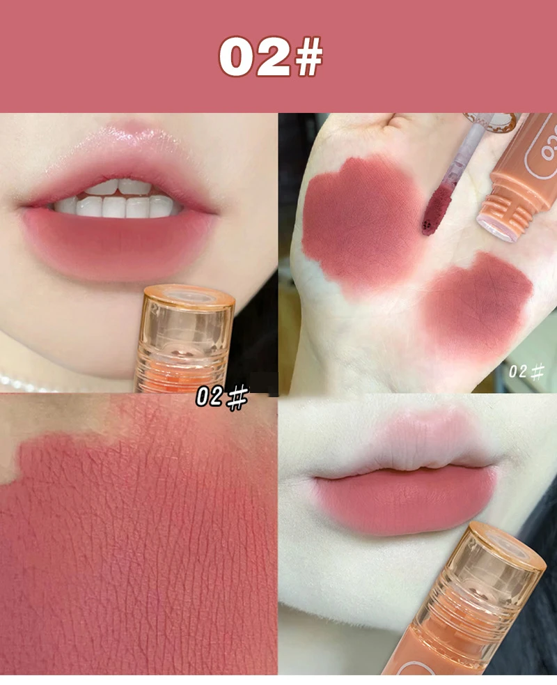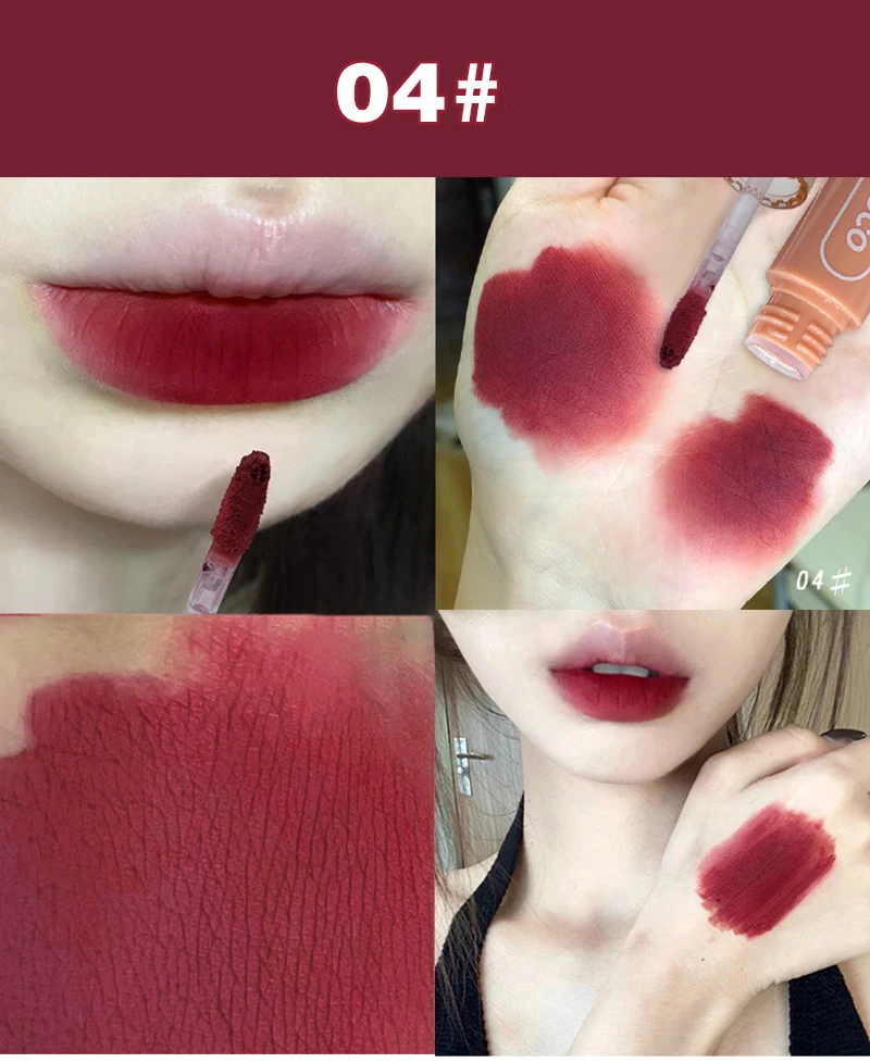 PINK COCO Retro Red Matte Lip Mud Mousse Grey Pink Lipstick Velvet Lip Glaze Non-Sticky Lipgloss Makeup Lip Tint Beauty Cosmetic