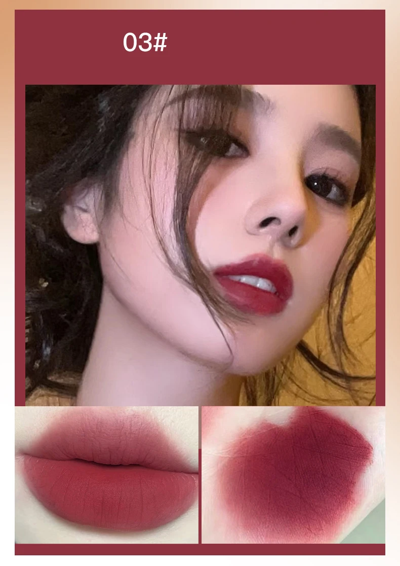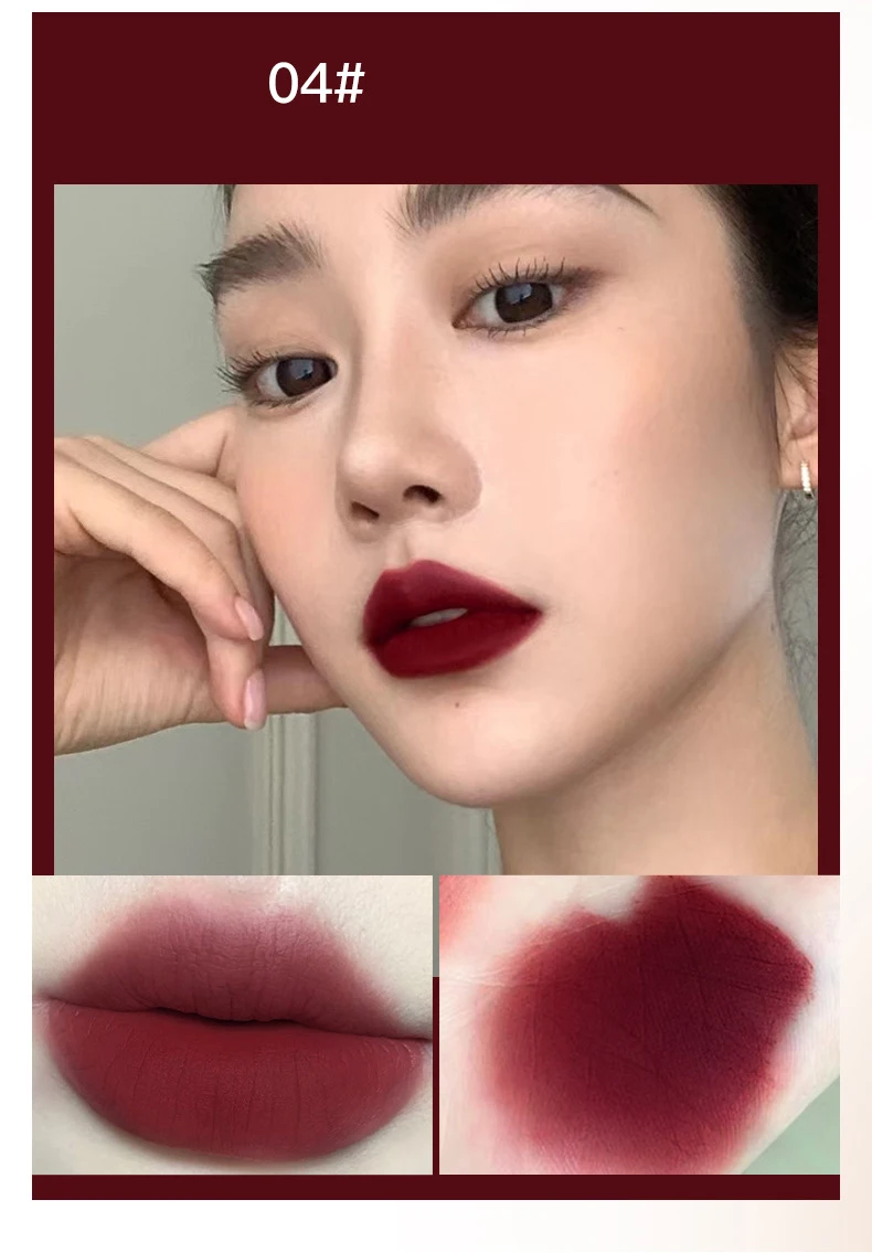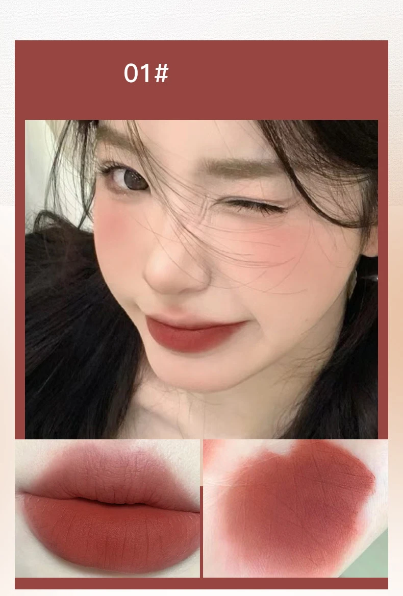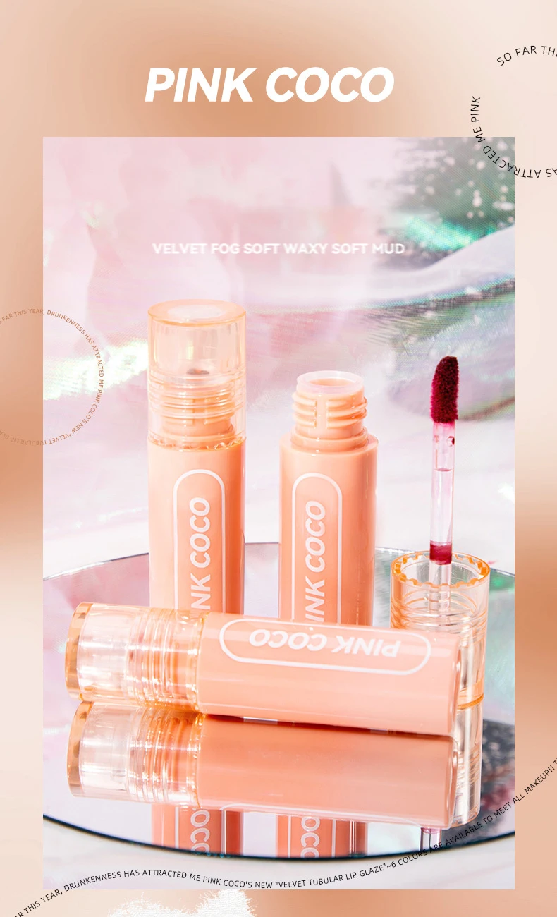 PINK COCO Retro Red Matte Lip Mud Mousse Grey Pink Lipstick Velvet Lip Glaze Non-Sticky Lipgloss Makeup Lip Tint Beauty Cosmetic