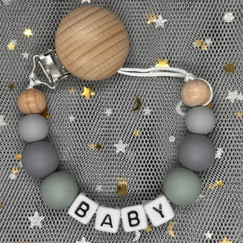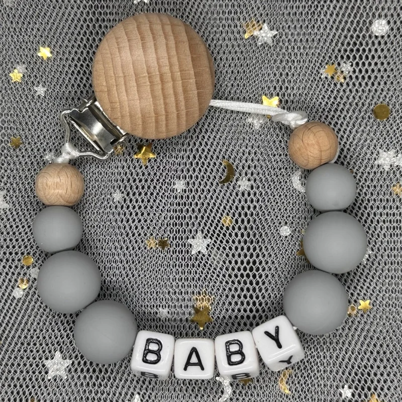 Pink Personalised Name Silicone Bead Baby Pacifier Clip Chain Nipple Pacifier Chain with Name Holder for Newborn Shower Toy Gift