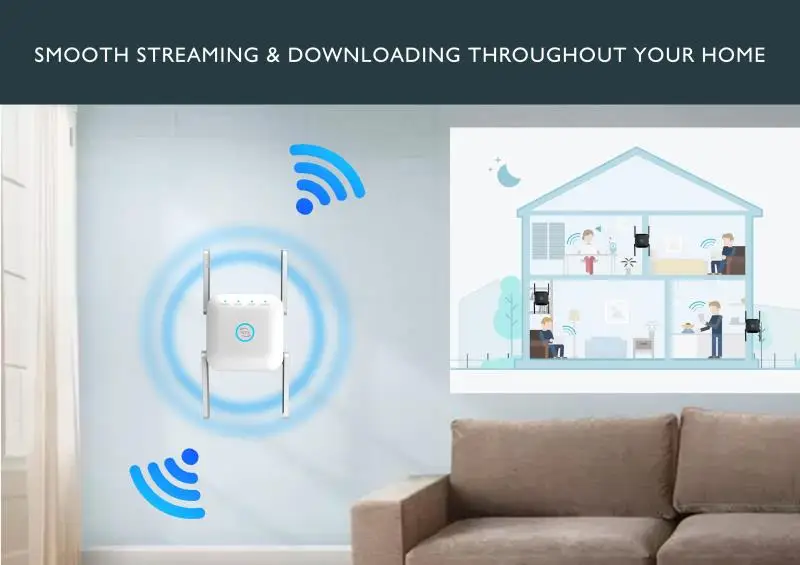 The wifi extender is equipped with 4 external antennas, which can eliminate dead area and improve the existing Wi-Fi coverage.