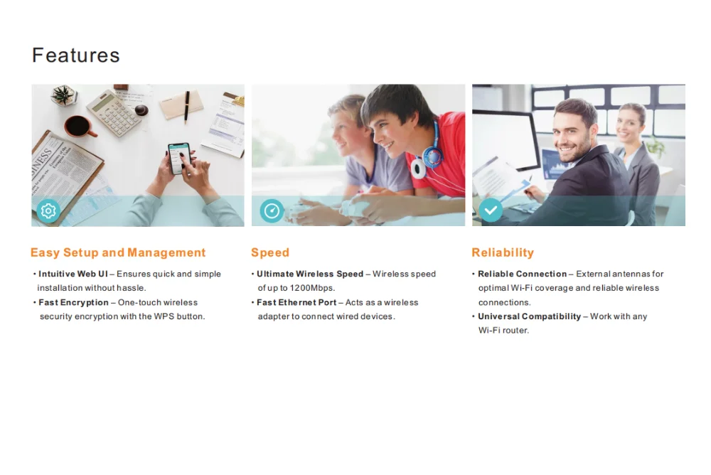 Ethernet Port: Allow the extender to function as a wireless adapter to connect wired devices