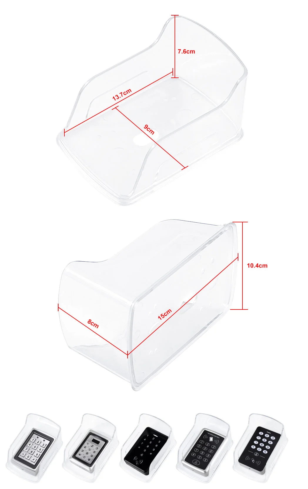 This waterproof cover is very suitable for RFID access controller, Wifi video door bell, fingerprint time attendance machines which length is less than 13cm, width is less than 8cm.