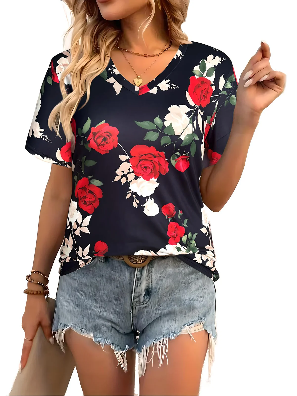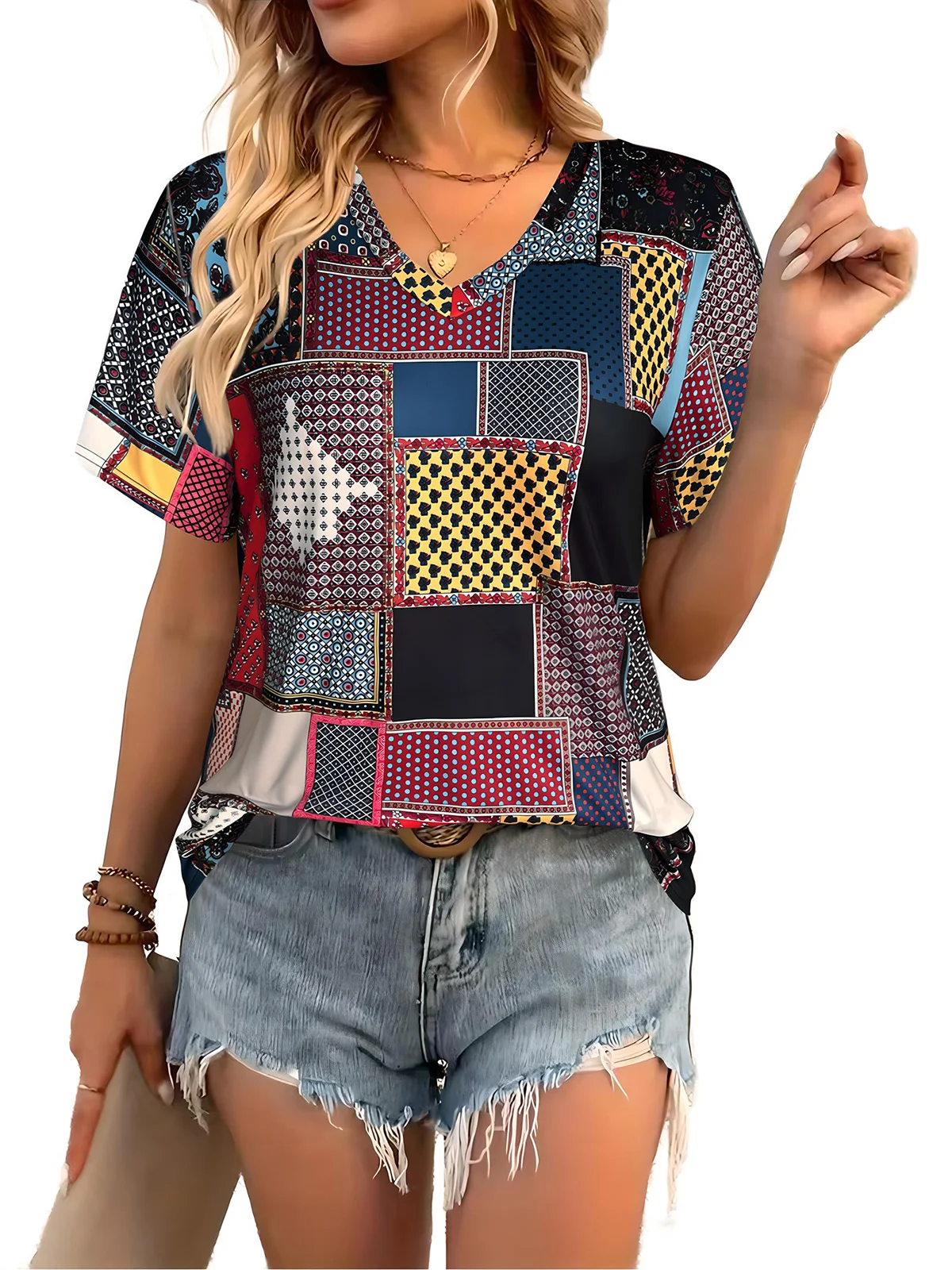 Plus Size 6XL Women’s Short Sleeve T-Shirts V-neck Printed Tees Summer Casual Loose Tops Ladies Clothing 2025 Fashion Y2K Blouse