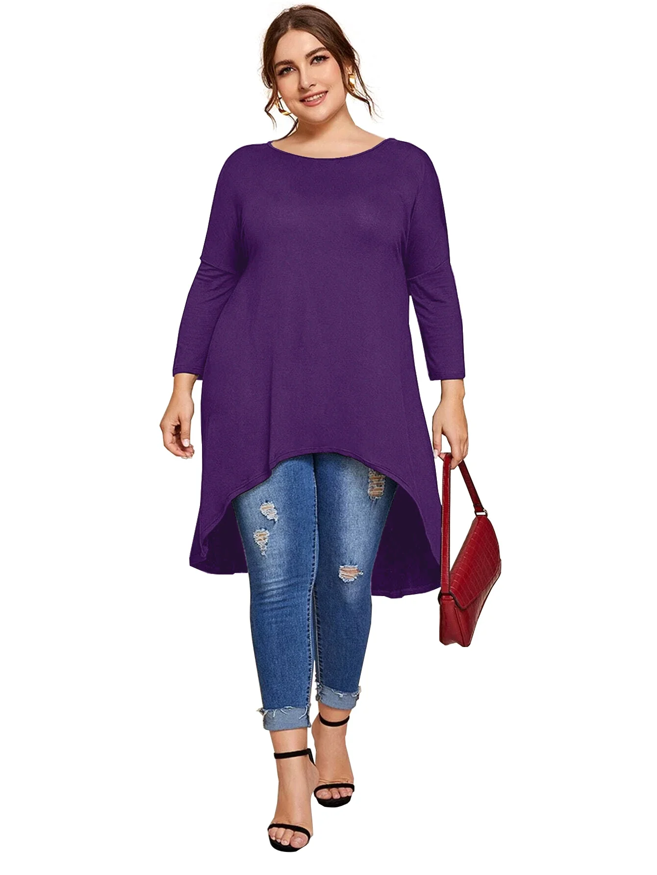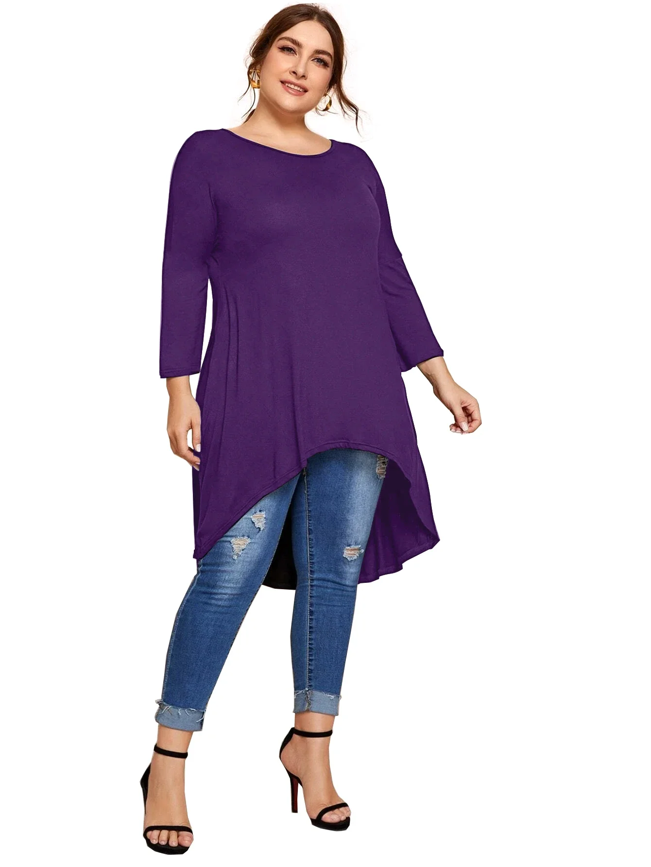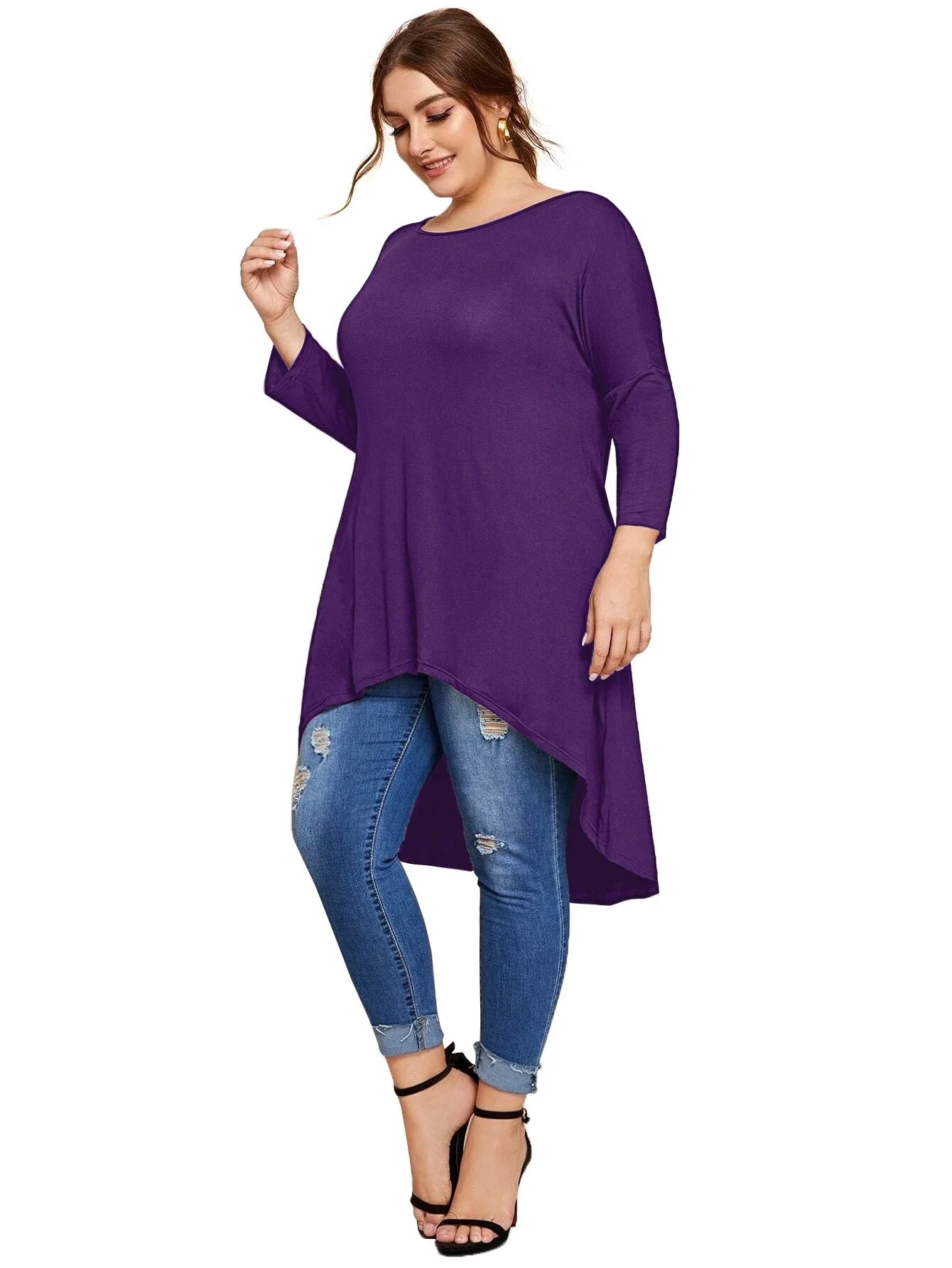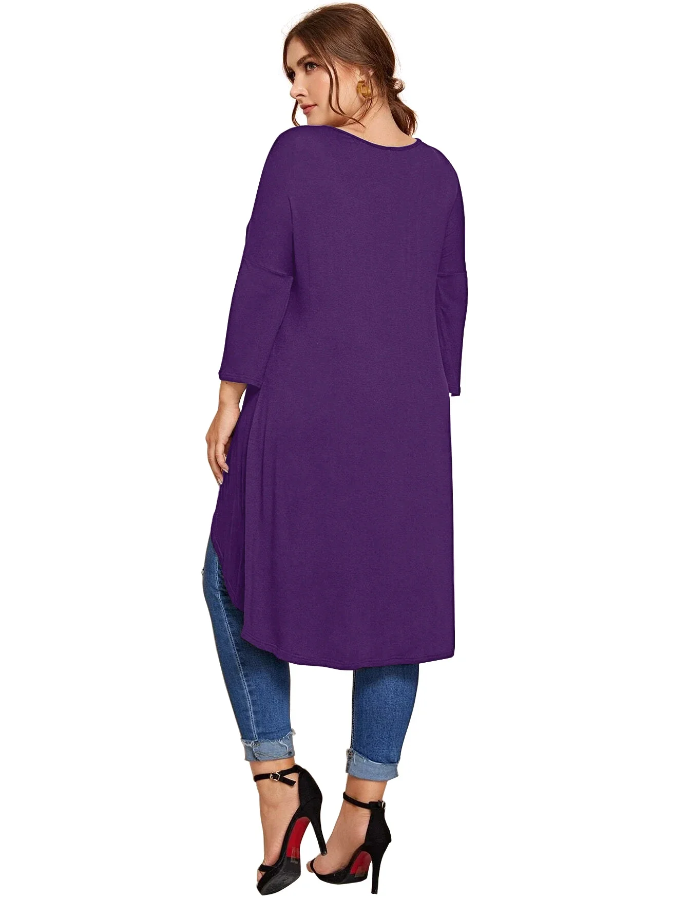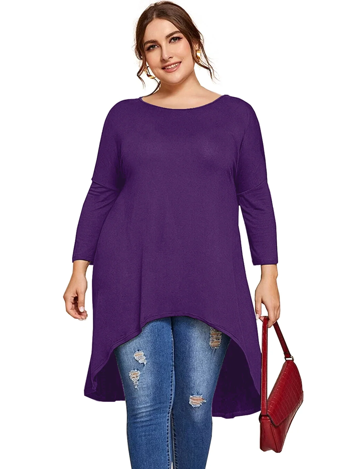 Plus Size Long Sleeve Spring Autumn Casual Hi Low Tunic Tops Long Loose Fit Flare Basic Swing Blouse T Shirt Large Size Tops 8XL