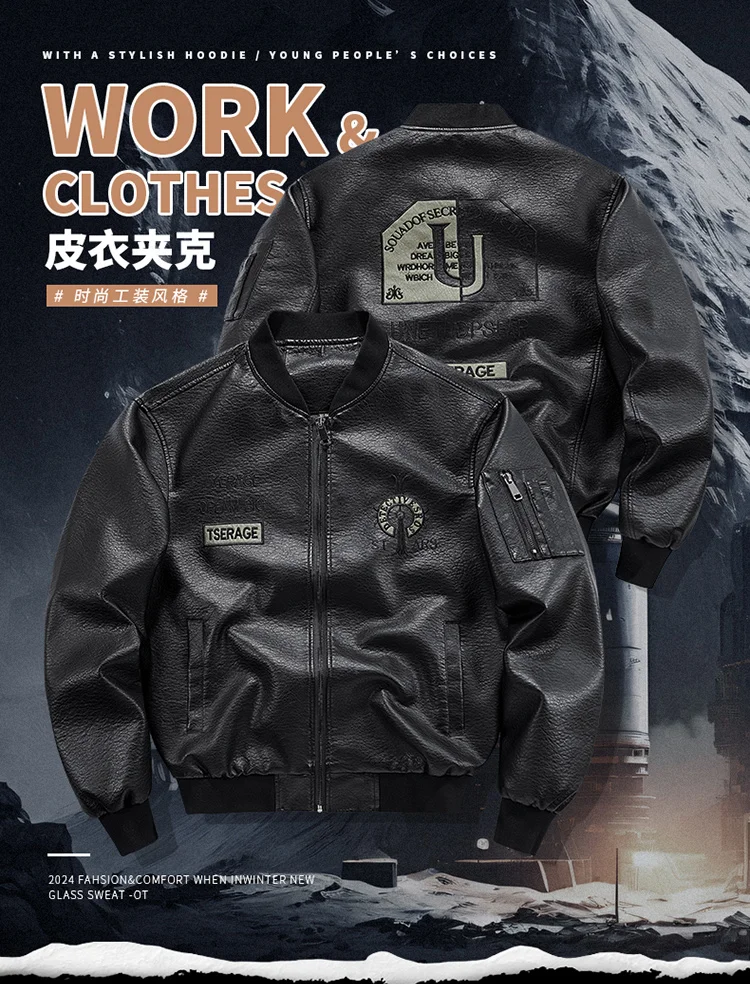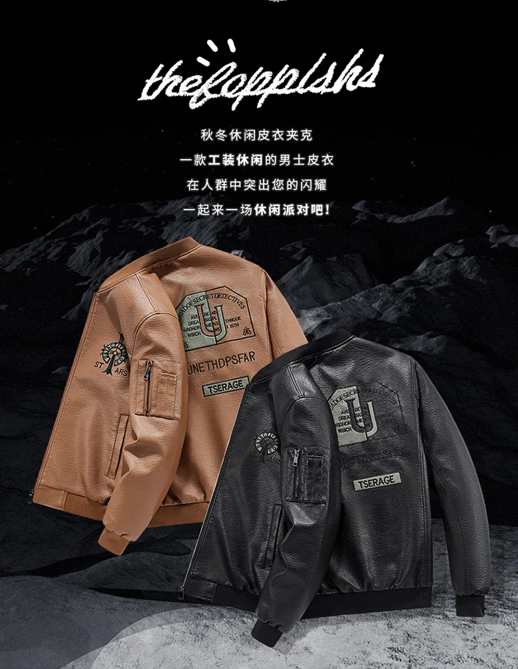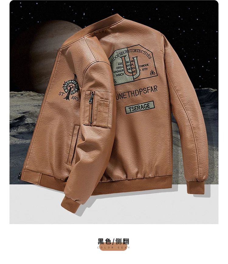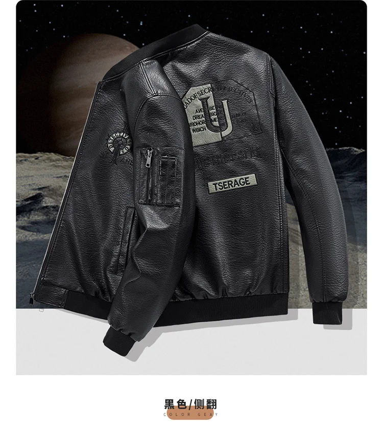 Plus Size Men’s Leather Jacket Lapel Embroidery Trend Biker Motorcycle Jacket Men’s Fashion Casual Windproof PU Bomber Coat 8xl
