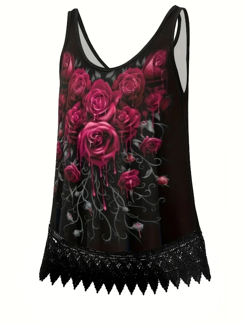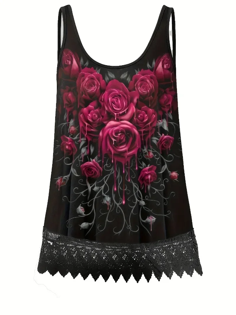 2024 Women's Summer New Casual Printed Loose U-neck Tank Top T-shirt for Women Comfortable for Daily Use plus size
