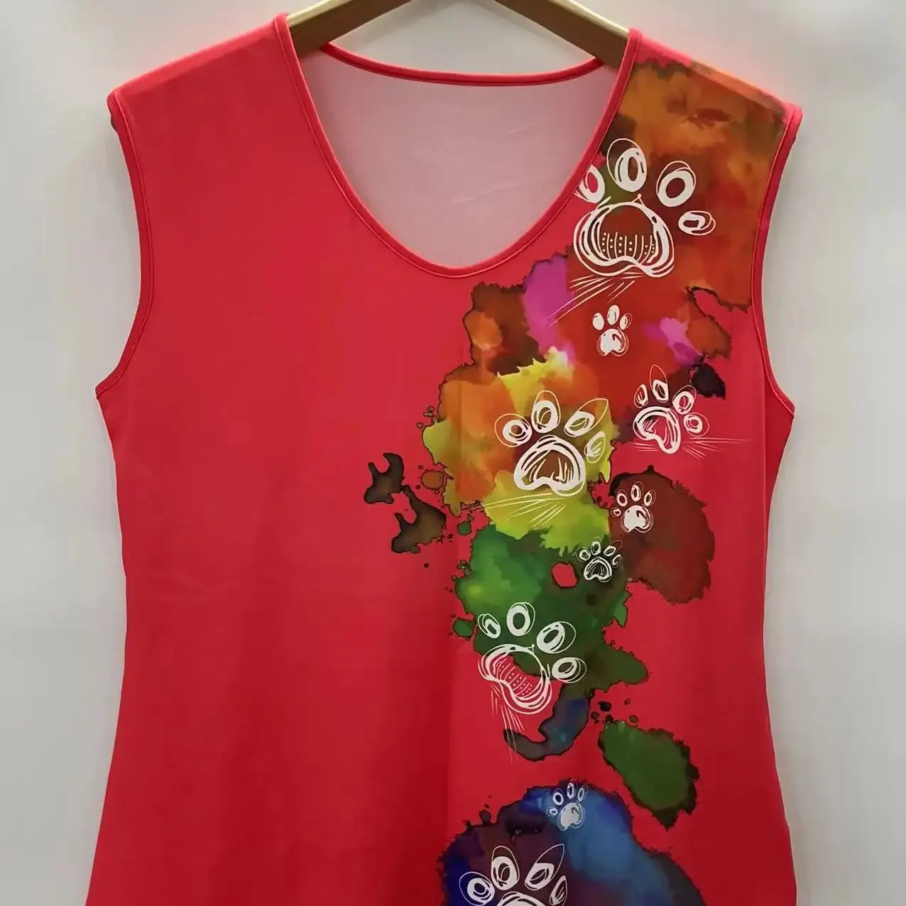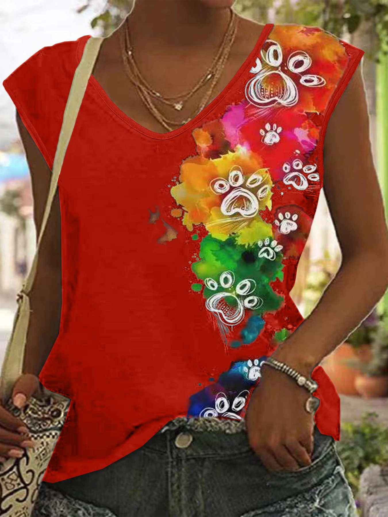 Plus Size Paw & Tie-Dye Print Top – Casual Cap Sleeve Comfort Stretch Year-Round StyleEasy Care