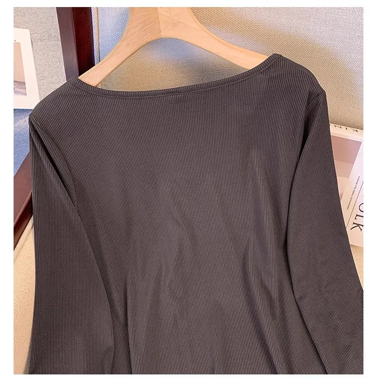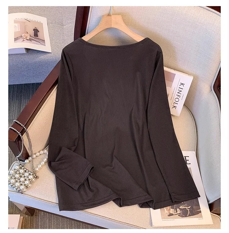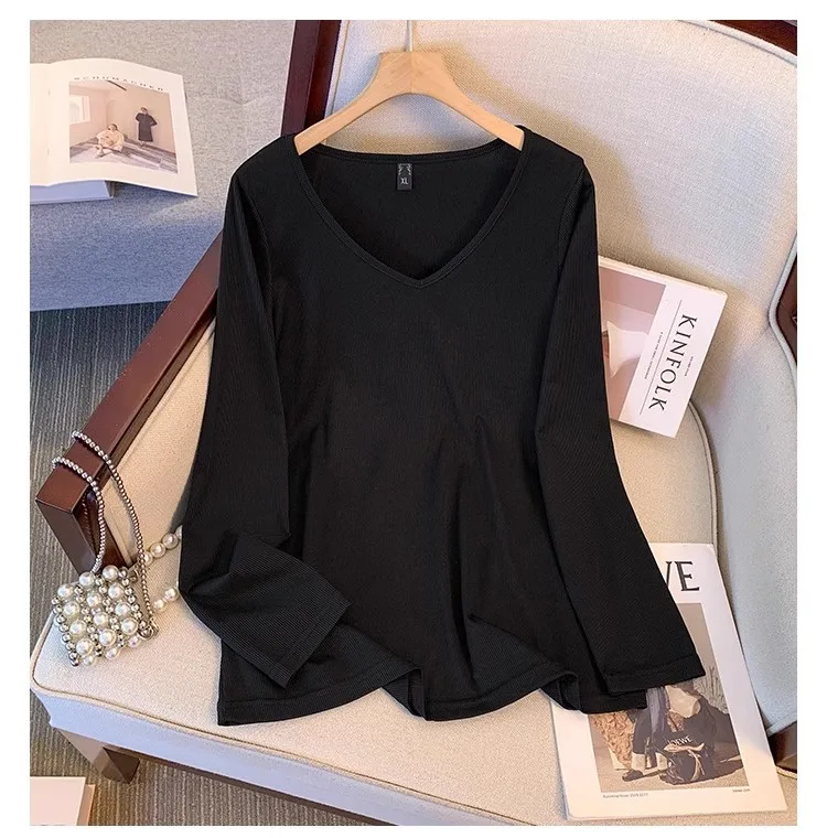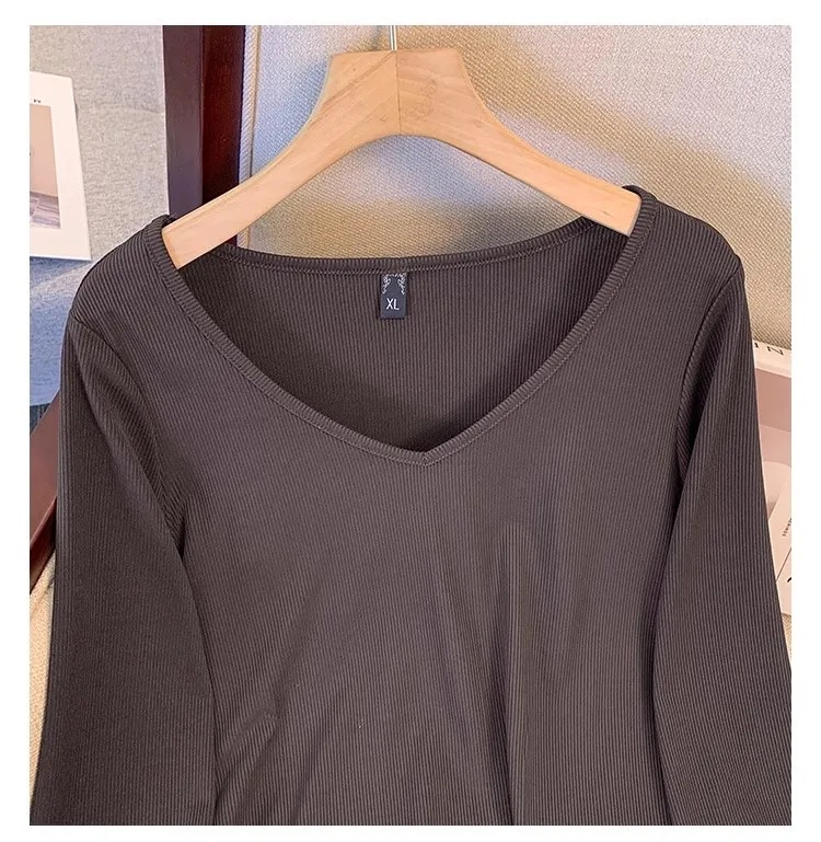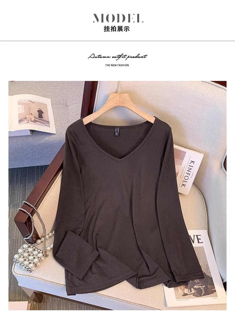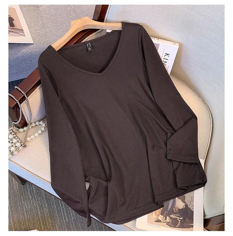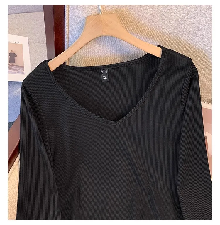 Plus size, versatile base shirt Korean version new slimming V-neck long sleeved T-shirt top 3350