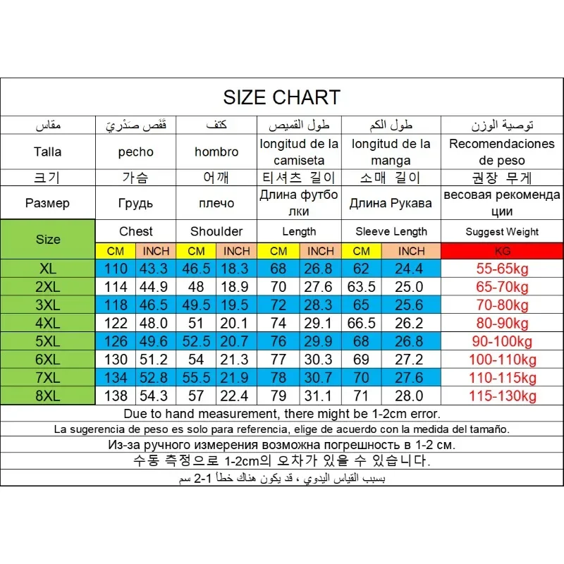 【Size】: XL,2XL , 3XL , 4XL , 5XL , 6XL , 7XL,8XL