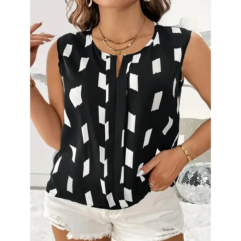 Plus Size Women’s 1XL-5XL Fashion Sleeveless Printed Round Neck Casual Tank Top Contrasting Colors Loose Sleeveless Shirt Vest