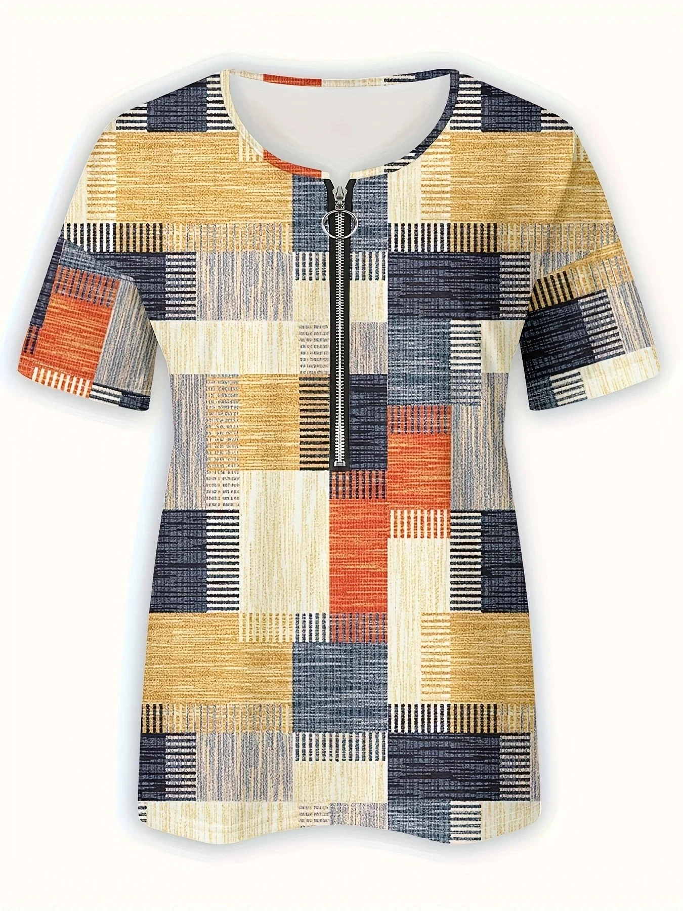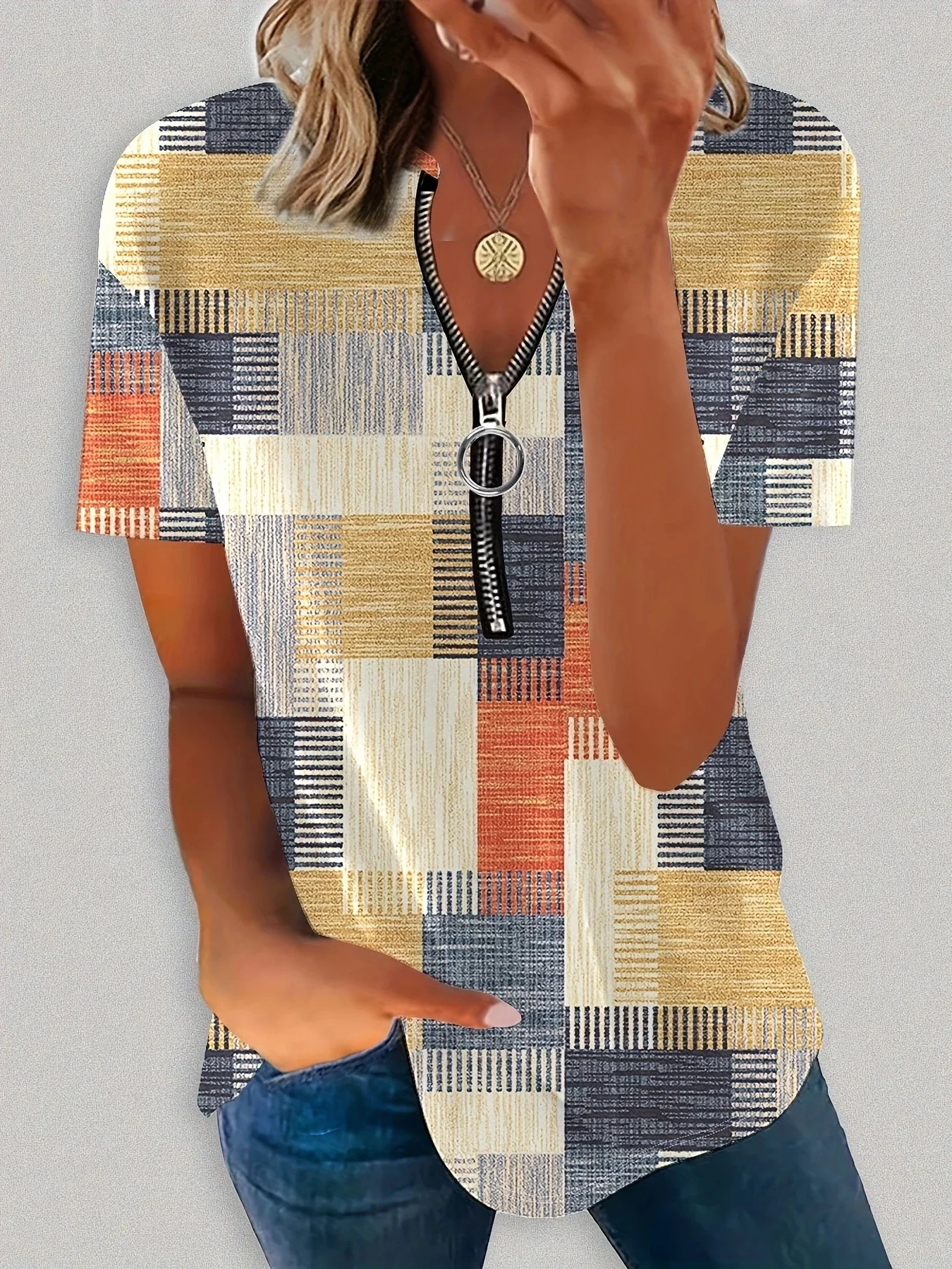 Plus Size Women’s Summer Fashion Zipper Short Sleeve Plus Size T-shirt Plus Size Women Clothing