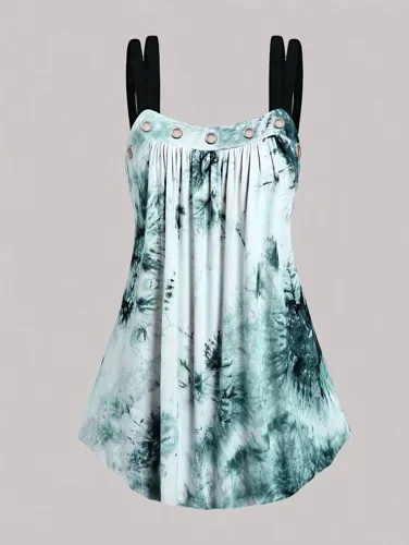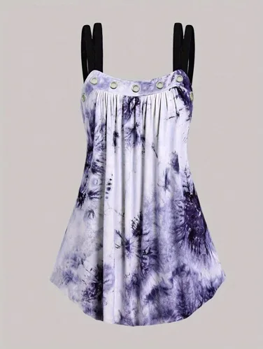 Plus size summer trendy fashion influencer casual sweet loose colored tank sunflower print strap top