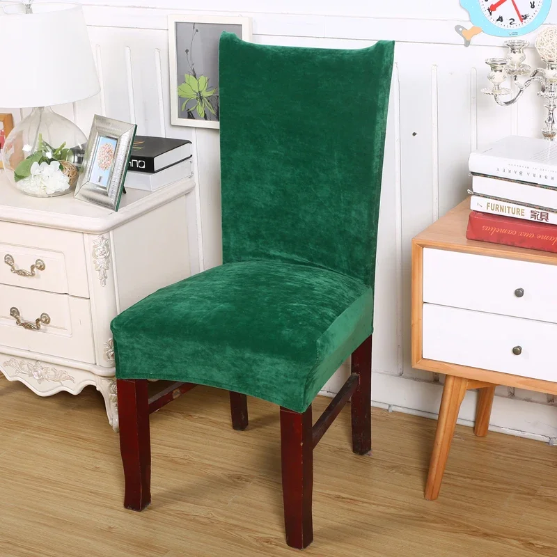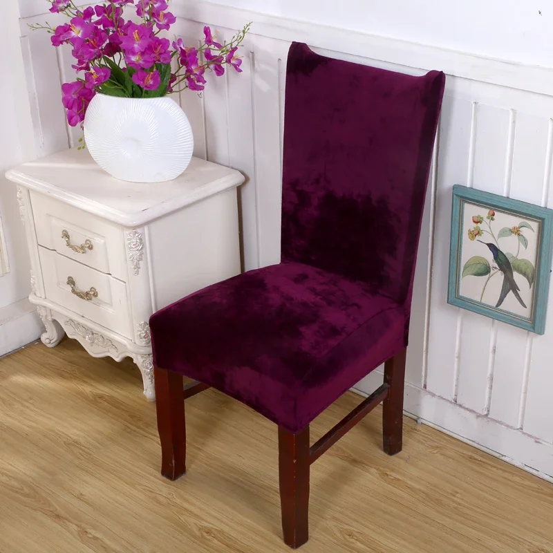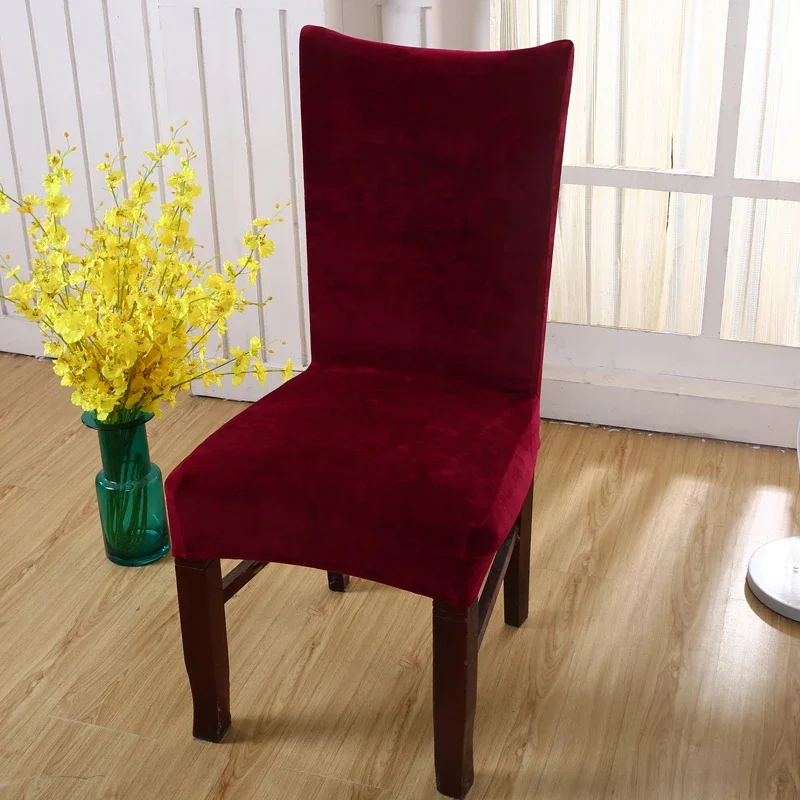 Plush Fabric Chair Covers Velvet for Dining Room Dust-proof Slipcovers Elastic Seat Cover Stretch Keep Warm Solid Color Gray Red