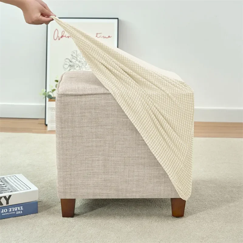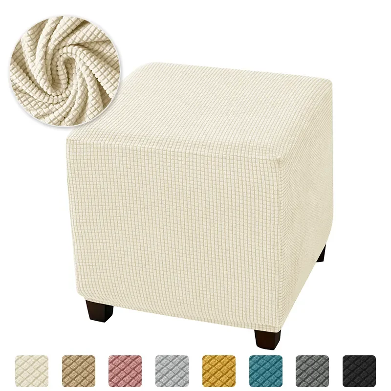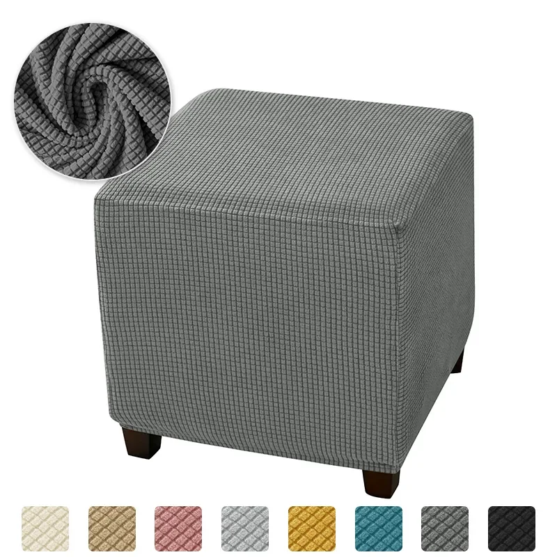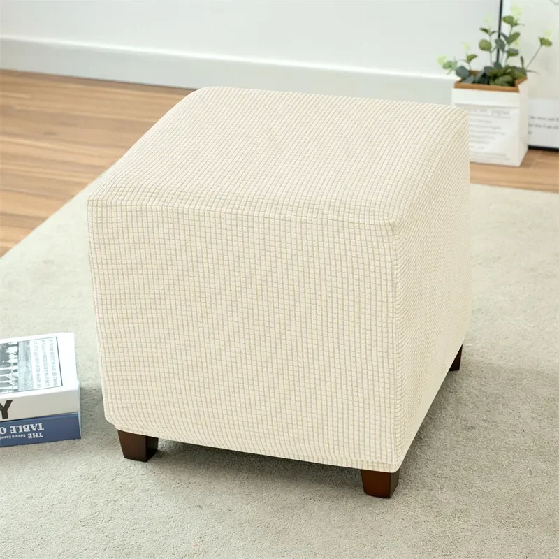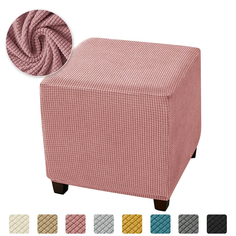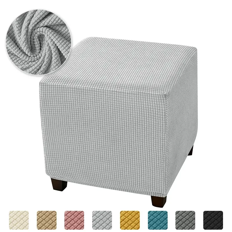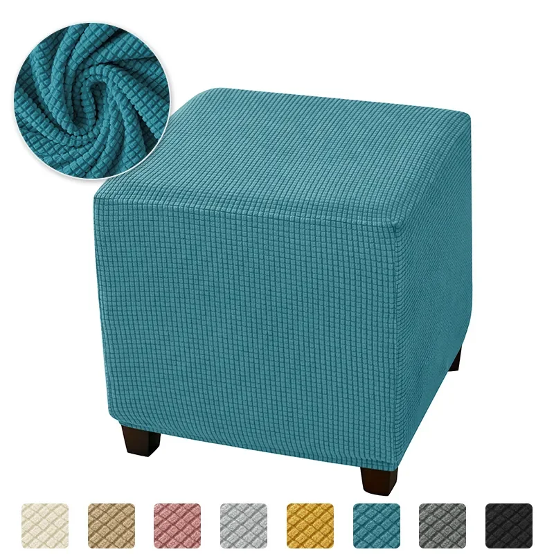 Polar Fleece Square Ottoman Covers Elastic Footrest Slipcover Stretch Stool Covers Living Room Furniture Protector housse pouf