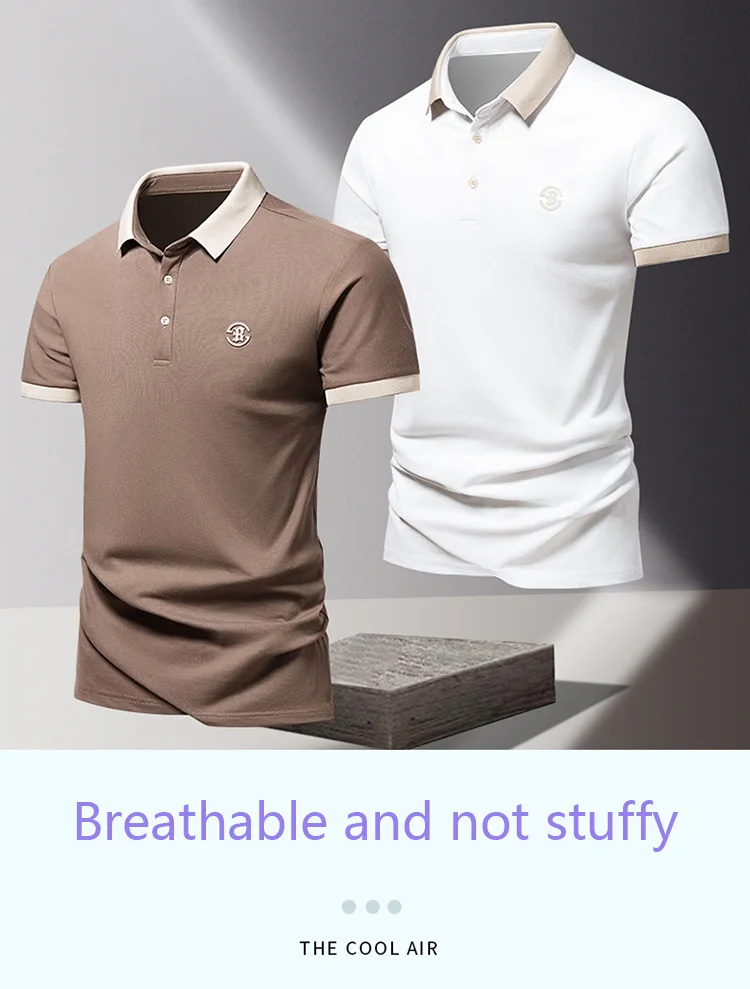 POLO shirt men’s summer fashion ice silk quick drying short sleeved T-shirt solid color loose business collar pure cotton top