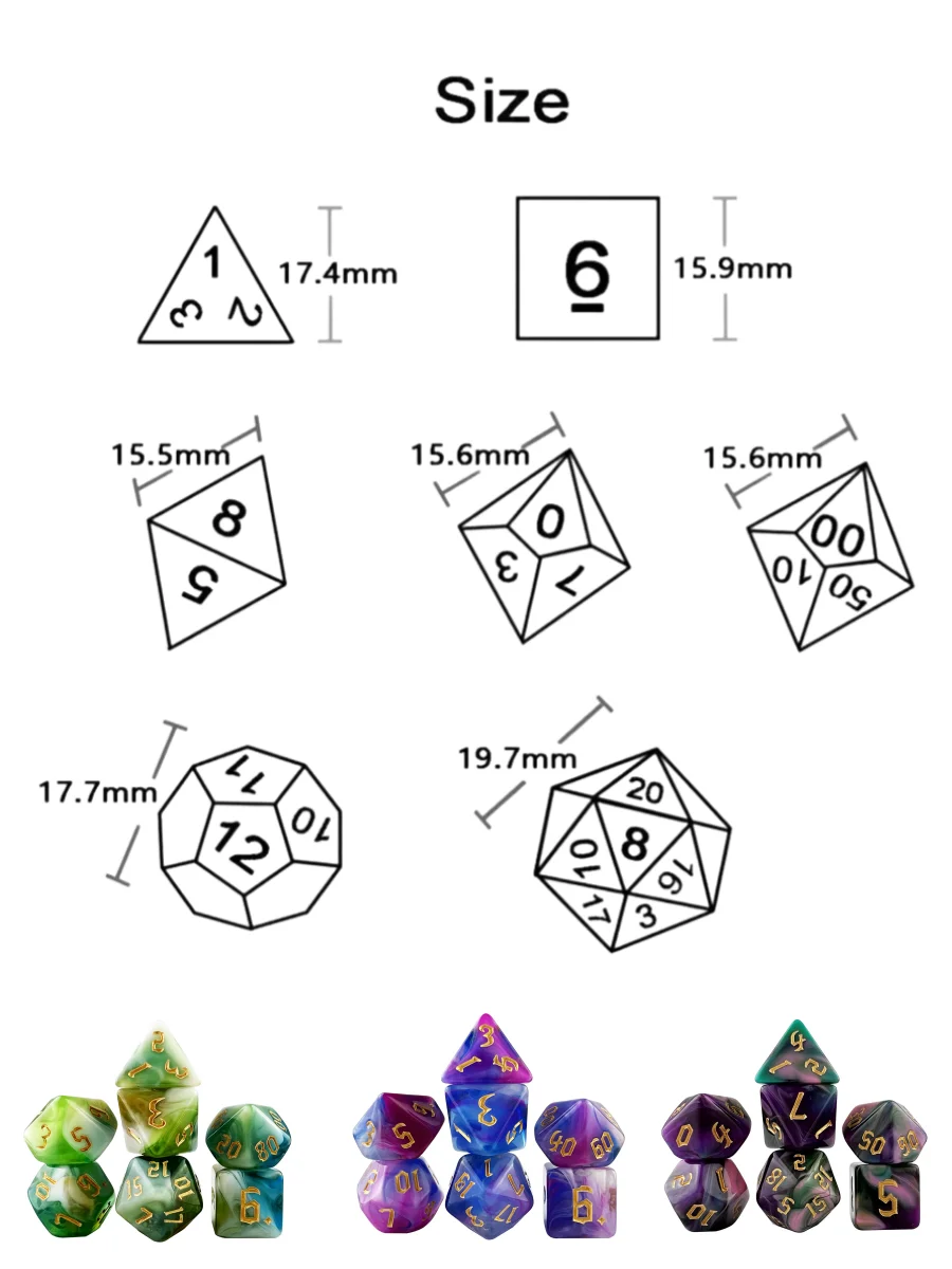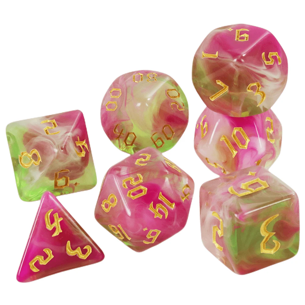 Polyhedral 7-Dice Two-Tone Swirl-DND Dice Set for RPG D4 D6 D8 D10 D% D12 D20 Dice Games 7pcs/set Family Party Board Games