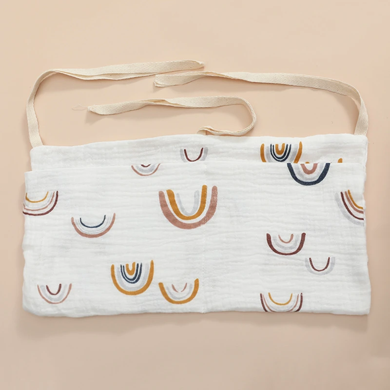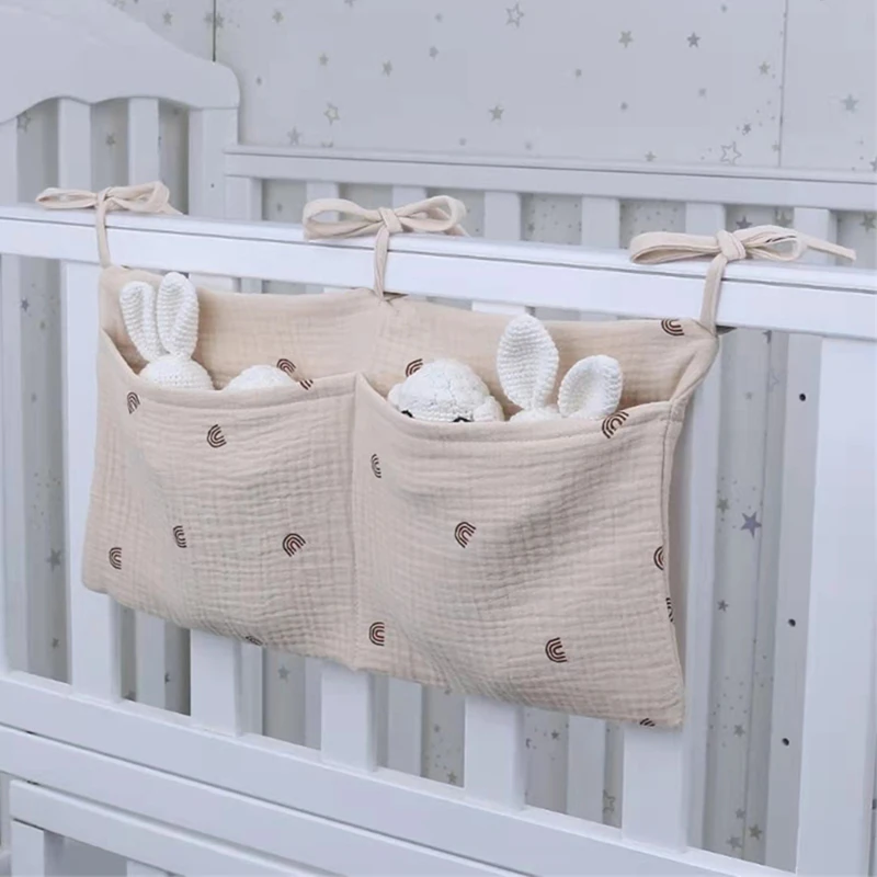 The Cotton crib hanging storage bag is suitable for diapers, pacifiers, teethers, baby wipes,