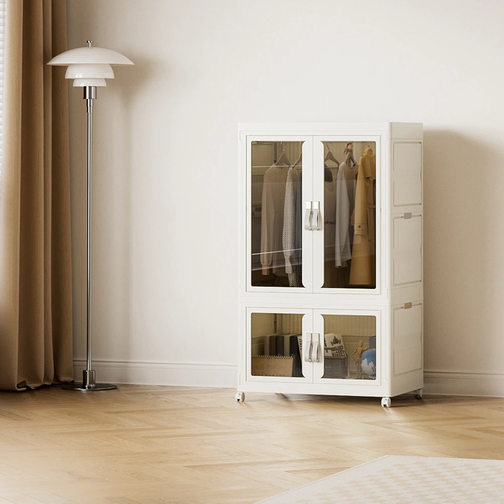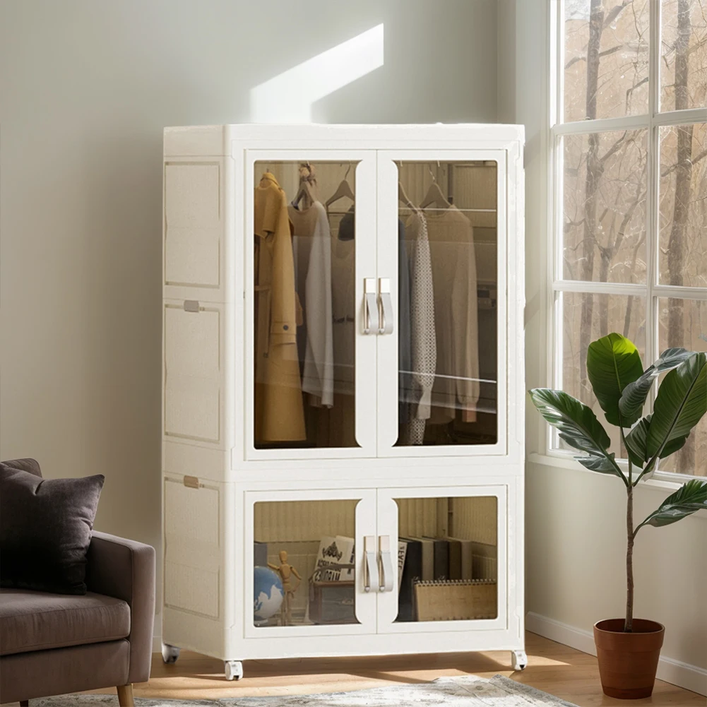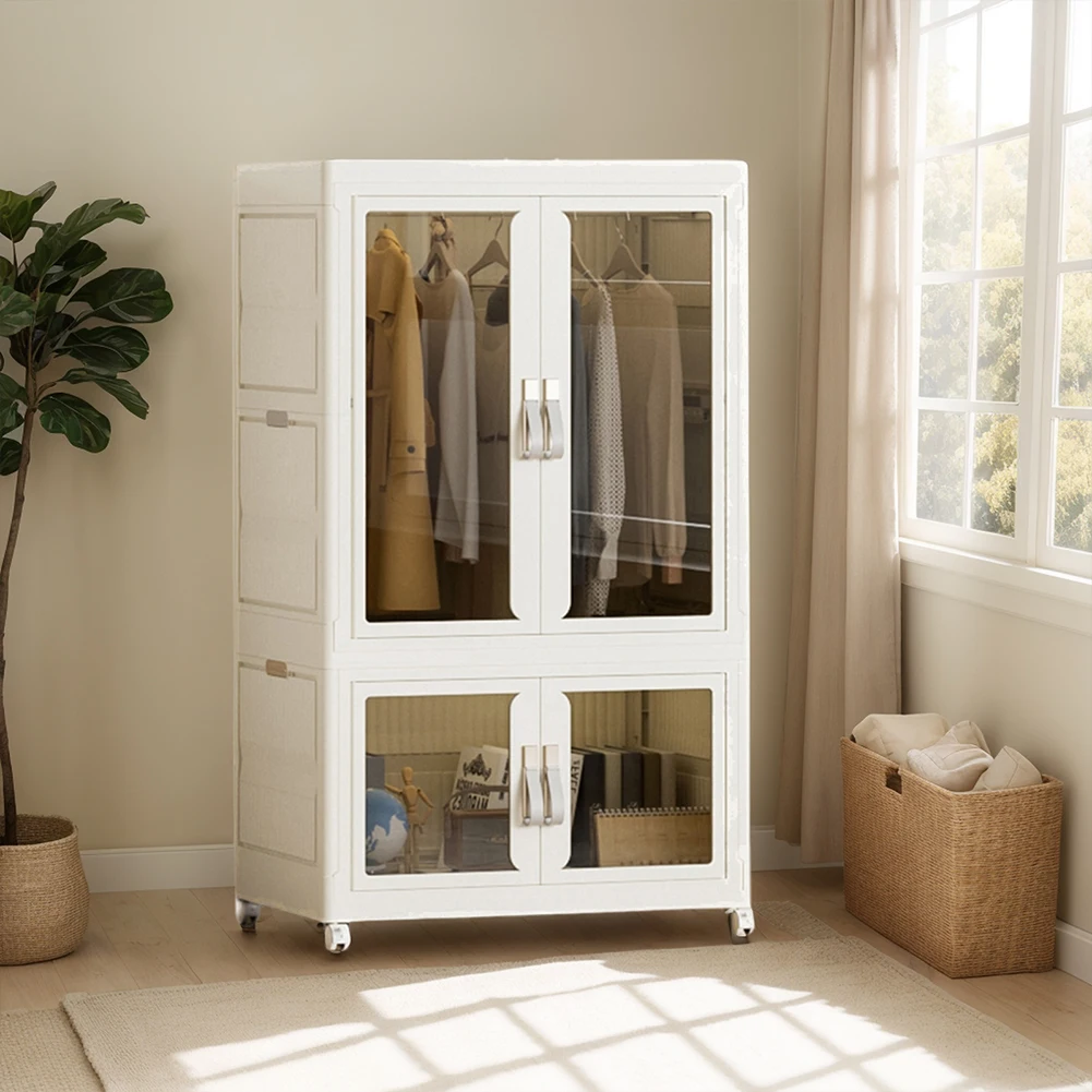 Portable Closet Collapsible Wardrobe with Hanging Rod Storage Organizer with Clear Door Plastic Wardrobe for Living Room Bedroom