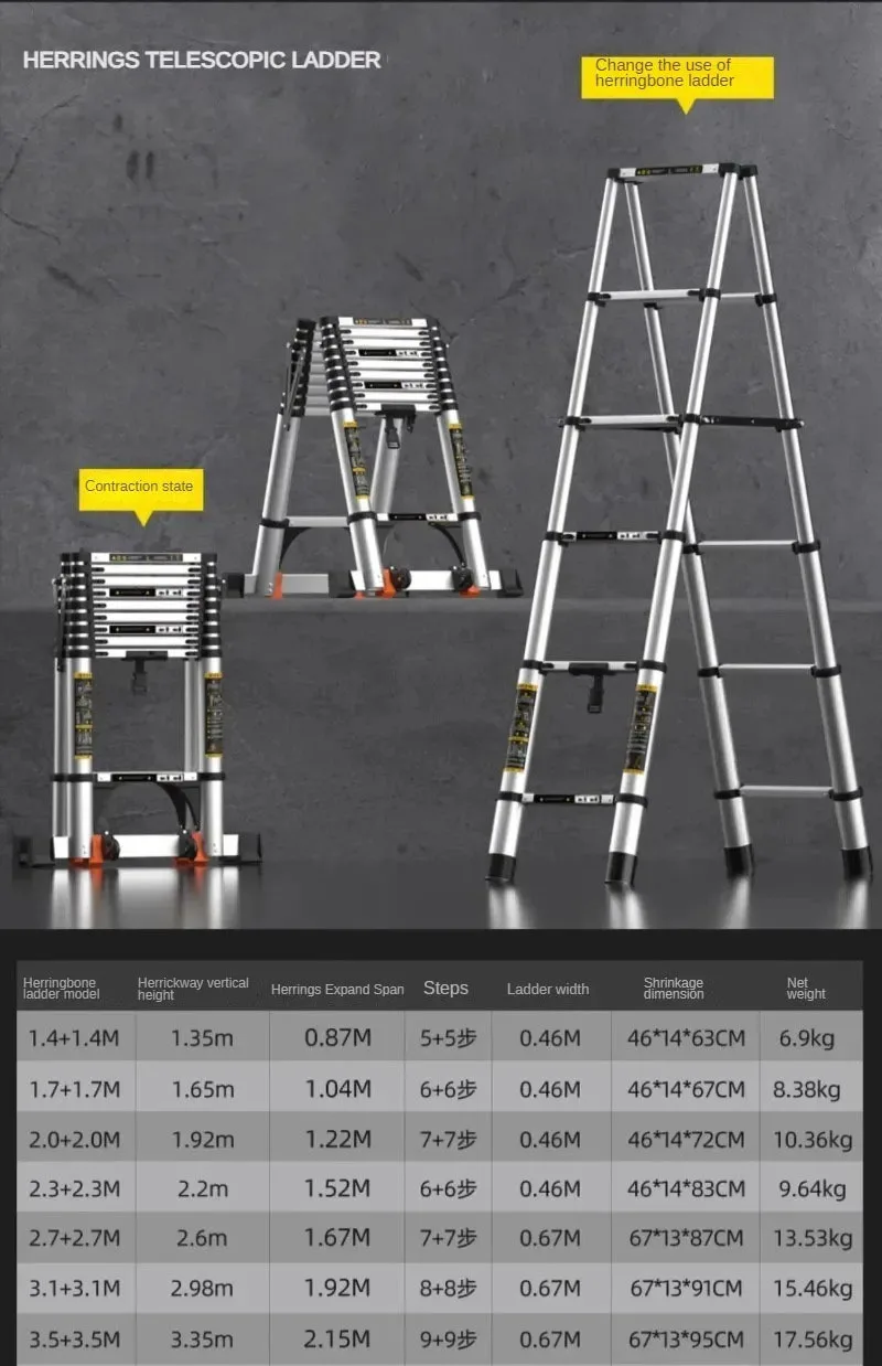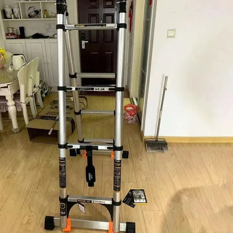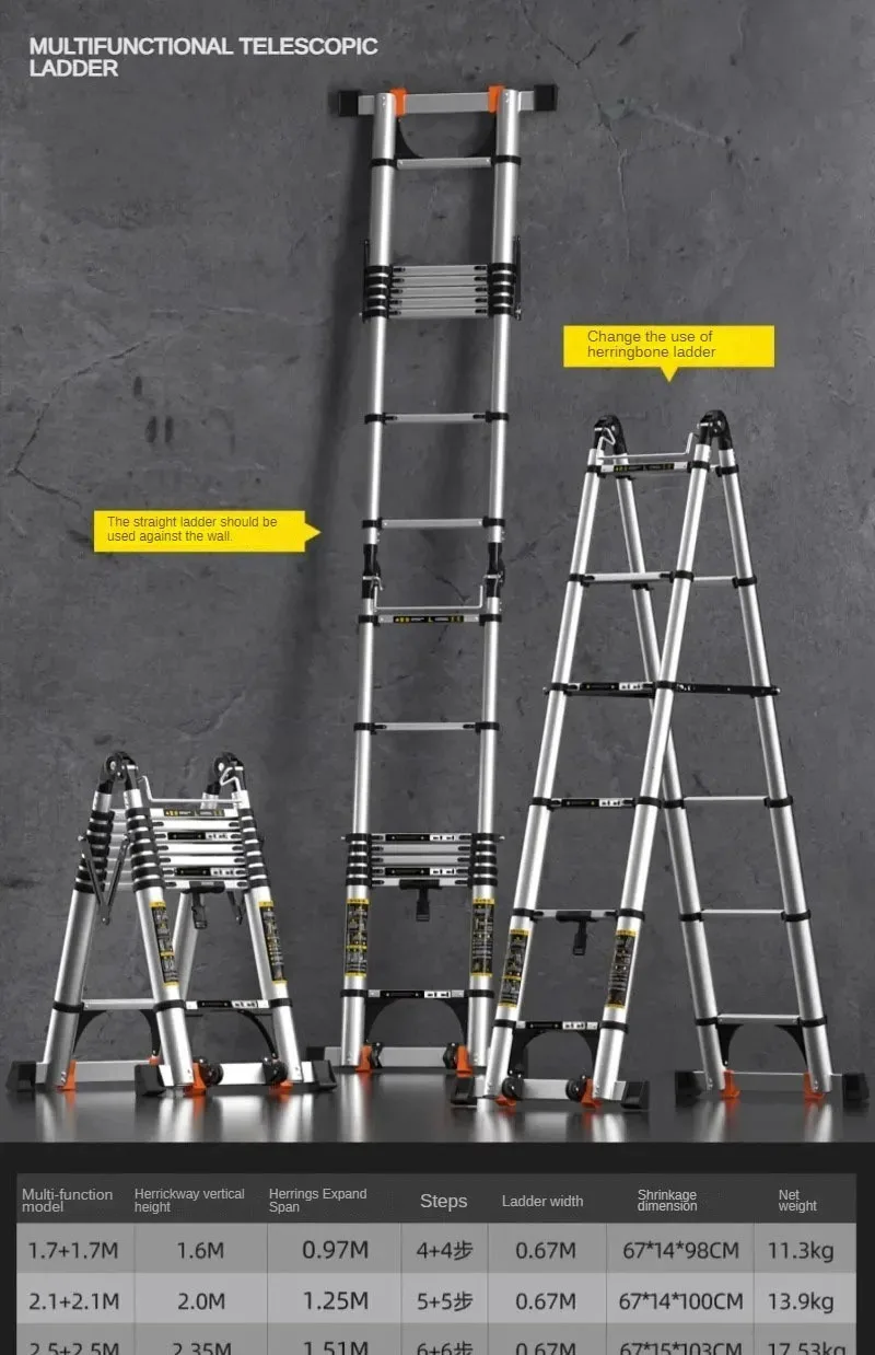 Portable Folding Straight Ladder Multi-functional Telescopic Ladder Aluminum Alloy Step Stools Engineering Herringbone Ladder E