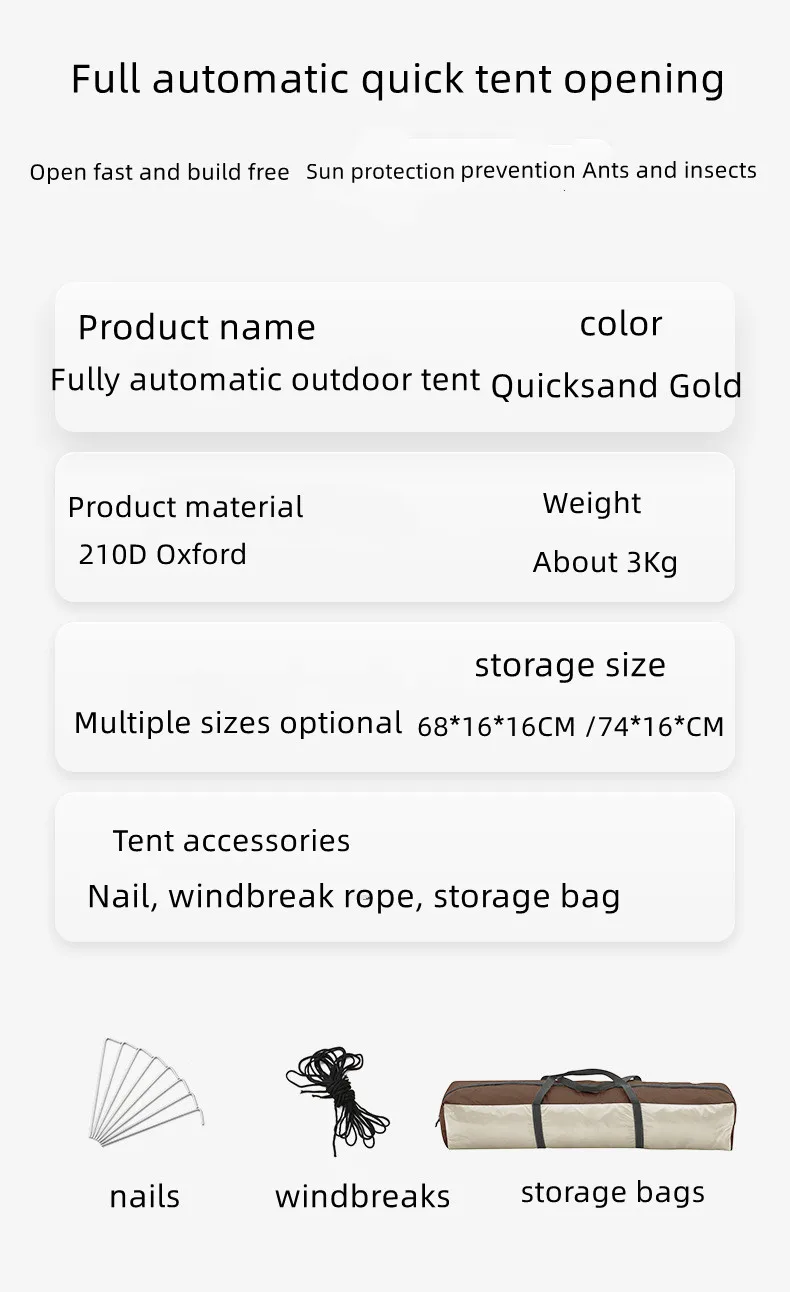 Automatic tent, quick opening, no construction, sunshade sunscreen