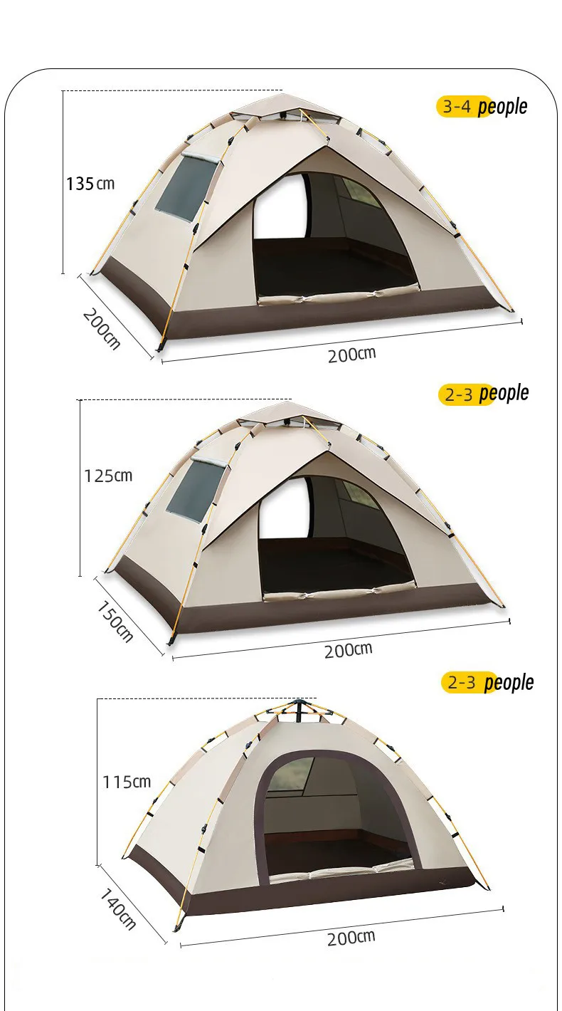 Portable Fully Automatic Camping Tent, Outdoor Tent, Shading, Sun Protection, Rain-proof, Quick Open, 2-3 Person, Hiking, Travel
