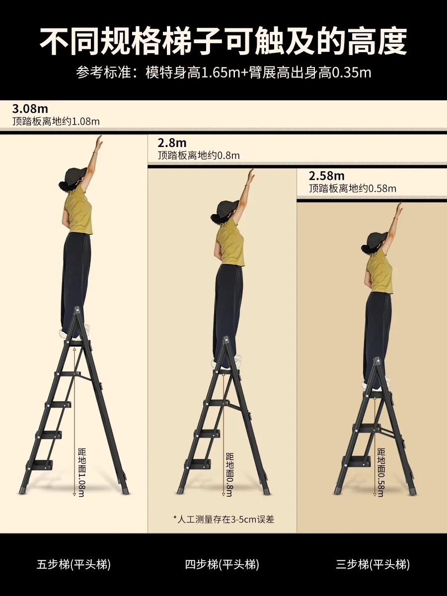 Ultra-Compact Folding: After folding, the ladder only takes up 5cm of space, making it easy to store.