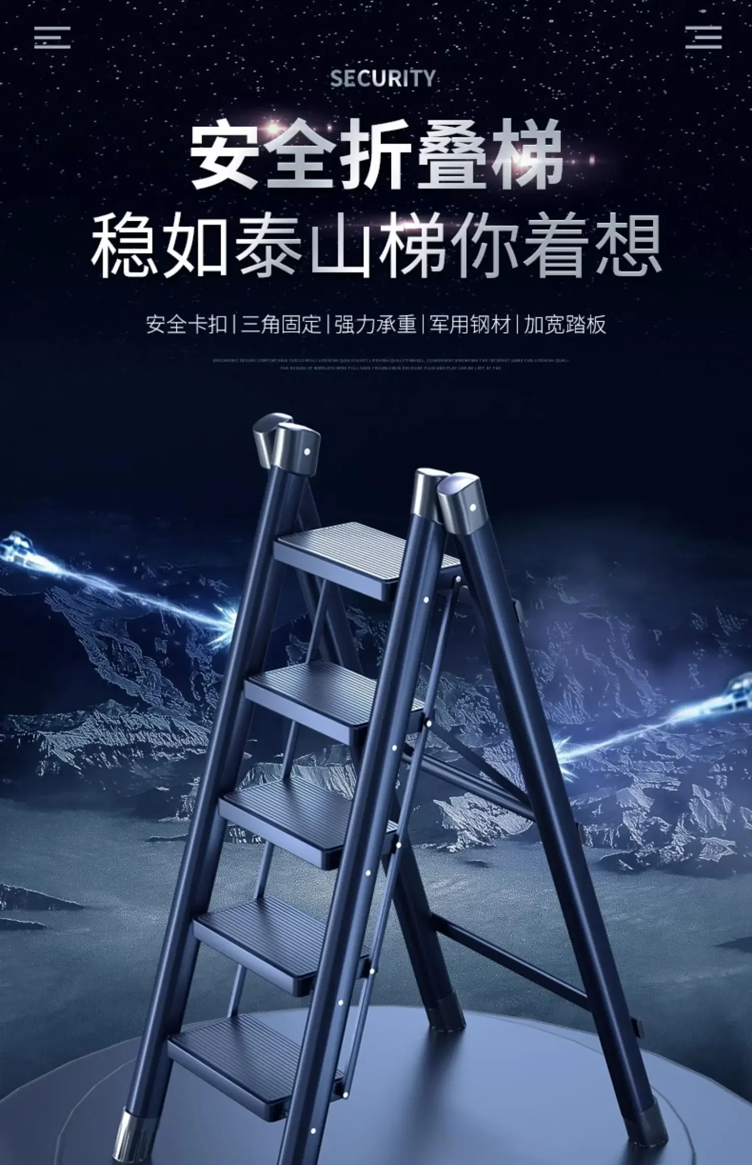 SEO High-Traffic Keywords: Folding ladder, step ladder, home ladder, carbon steel ladder, multi-step ladder, anti-slip ladder, tool ladder.