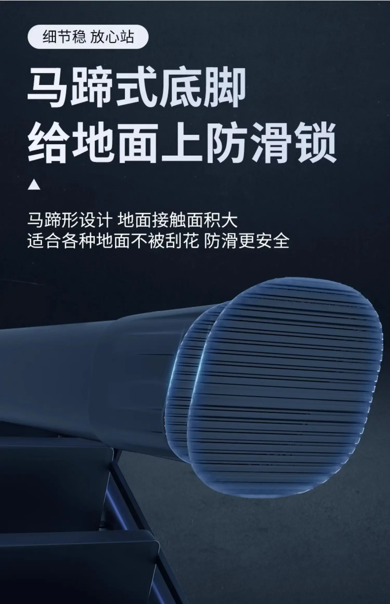 Non-Slip Feet: Equipped with horse-hoof anti-slip feet to provide a stable grip on the ground, preventing accidents.
