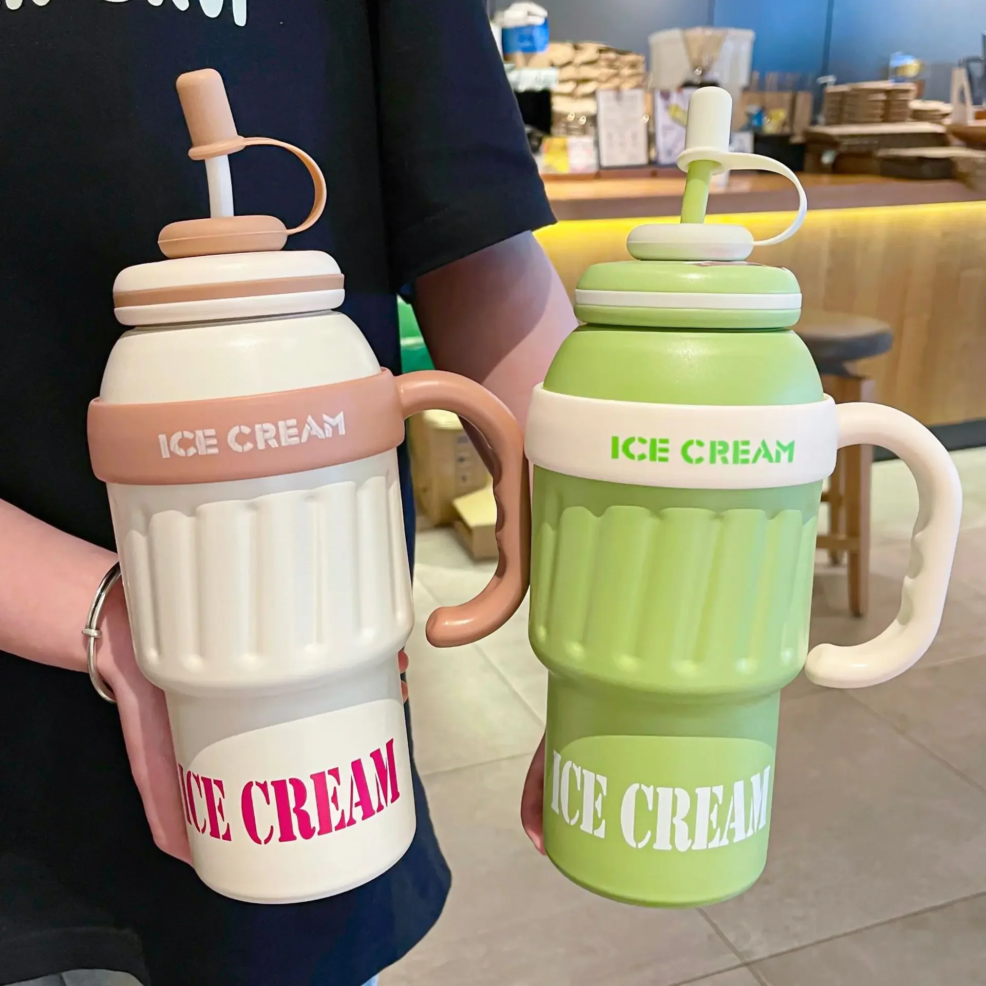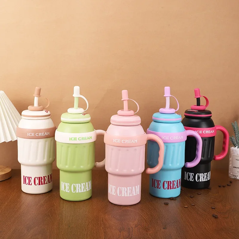 Portable Insulated Tumbler 1000ml with Handle Straw Stainless Steel Vacuum Travel Cup for Hot Cold Coffee Drinks Outdoor Sport