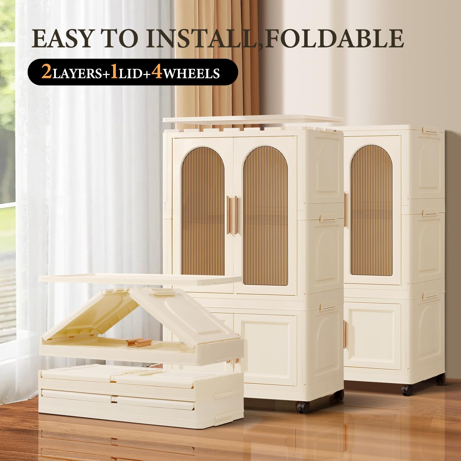 Portable And Durable: Closet For Kids Is Made Of Plastic(Pp+Abs). The Buckles On The Side Can Be Buckled More Firmly When Staclothes Shelving, And The Portable Closet Will Not Be Easily Tipped And Slipped. Transparent Visible Double Doors, Comfortable Handle And Wheel Design Make The Kids Dress Up Rack Easier To Move And Clean In The Bedroom, Creating A Modern And Stylish Children’S Room, Daughters Room
