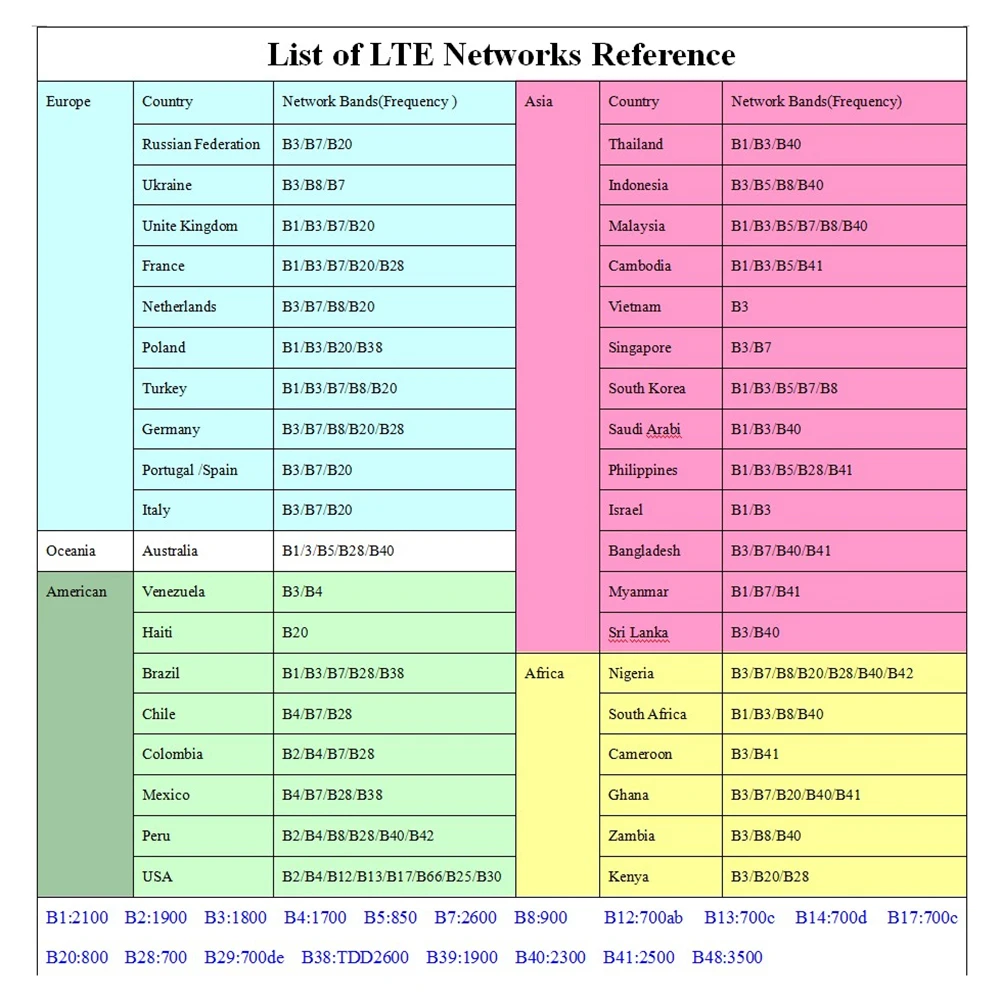 European version frequency band: B1/3/5/7/8/20/38/40/41 (2100/1800/850/2600/900/800/2600/2300/2500MHZ) (Applicable to Europe, Africa, Asia, the Middle East, Southeast Asia, Not available in America)