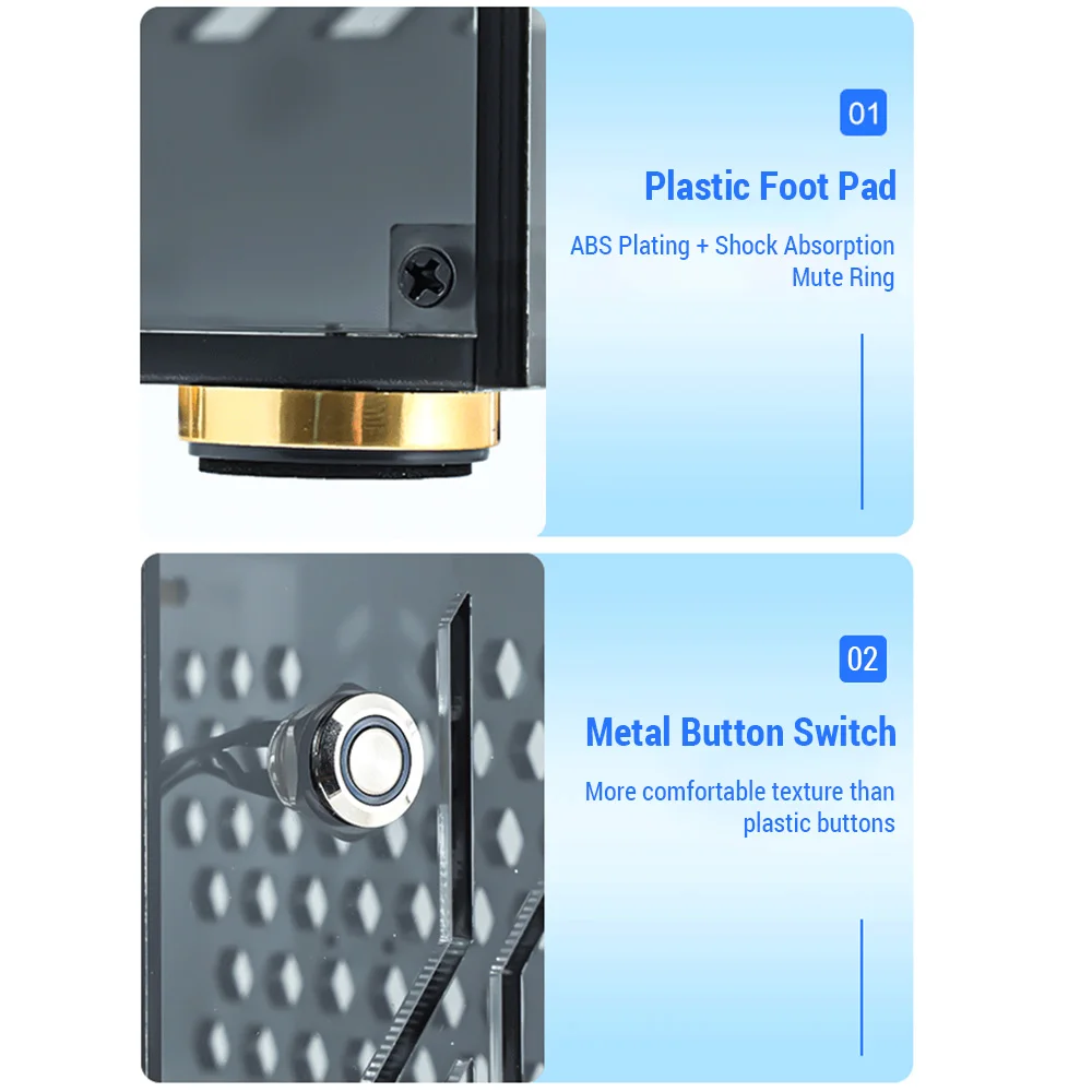 High Quality: The foot pad plastic uses ABS electroplating + shock-absorbing silent ring, and the metal button switch feels more comfortable than plastic buttons.