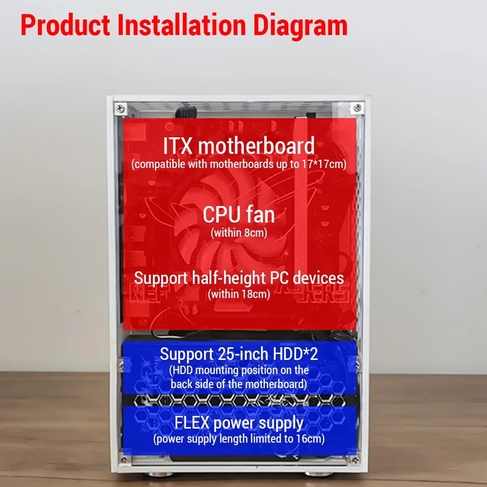 High Compatibility: Supports FLEX power supply and ITX motherboard (within 17*17cm), with strong adaptability.