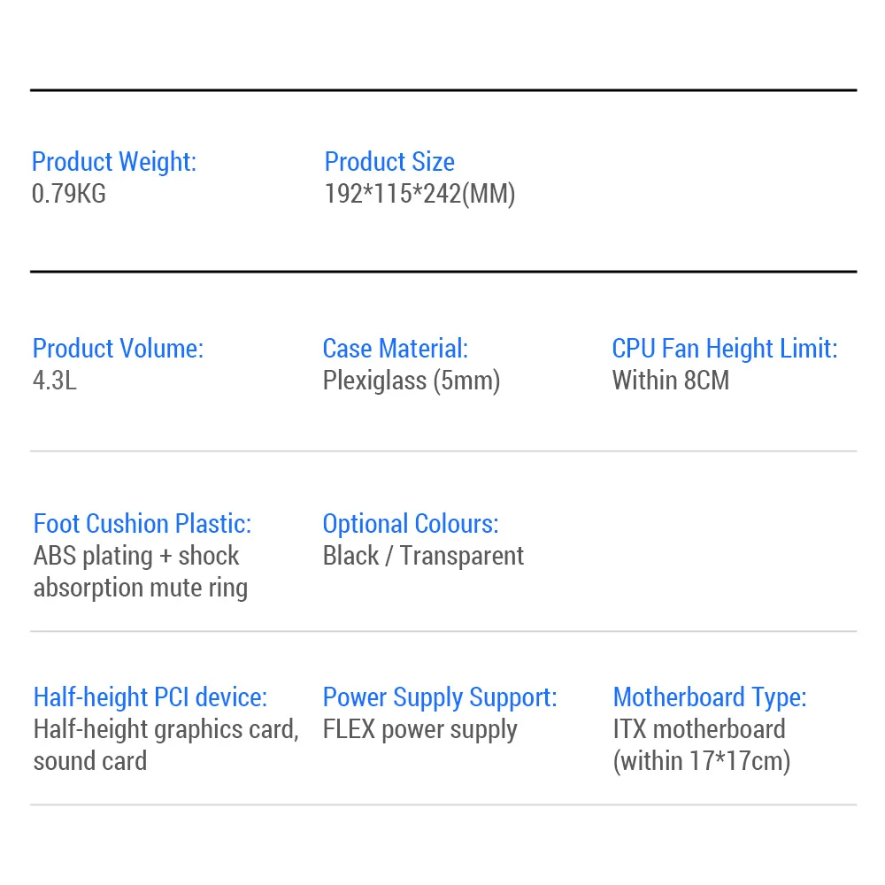 Portable Small Computer Case Plexiglass Shell Compact PC Case Desktop PC Case Mini-ITX Motherboard FLEX Power Supply