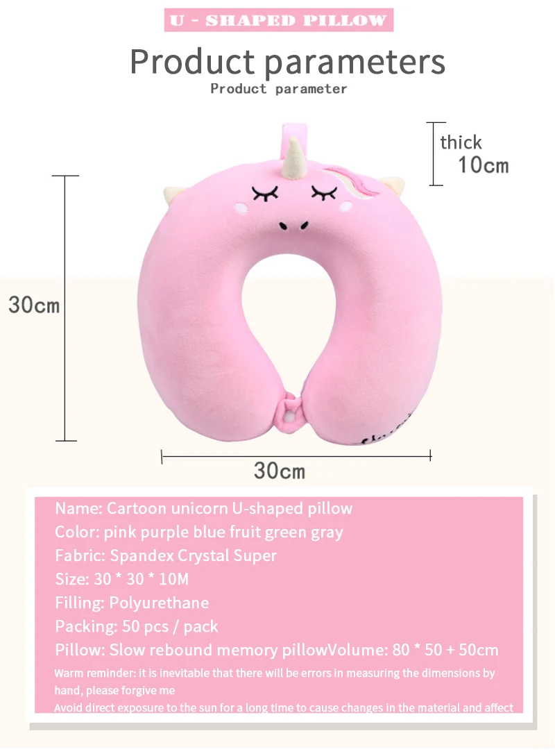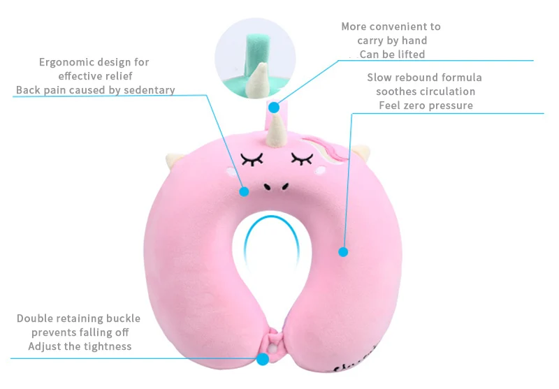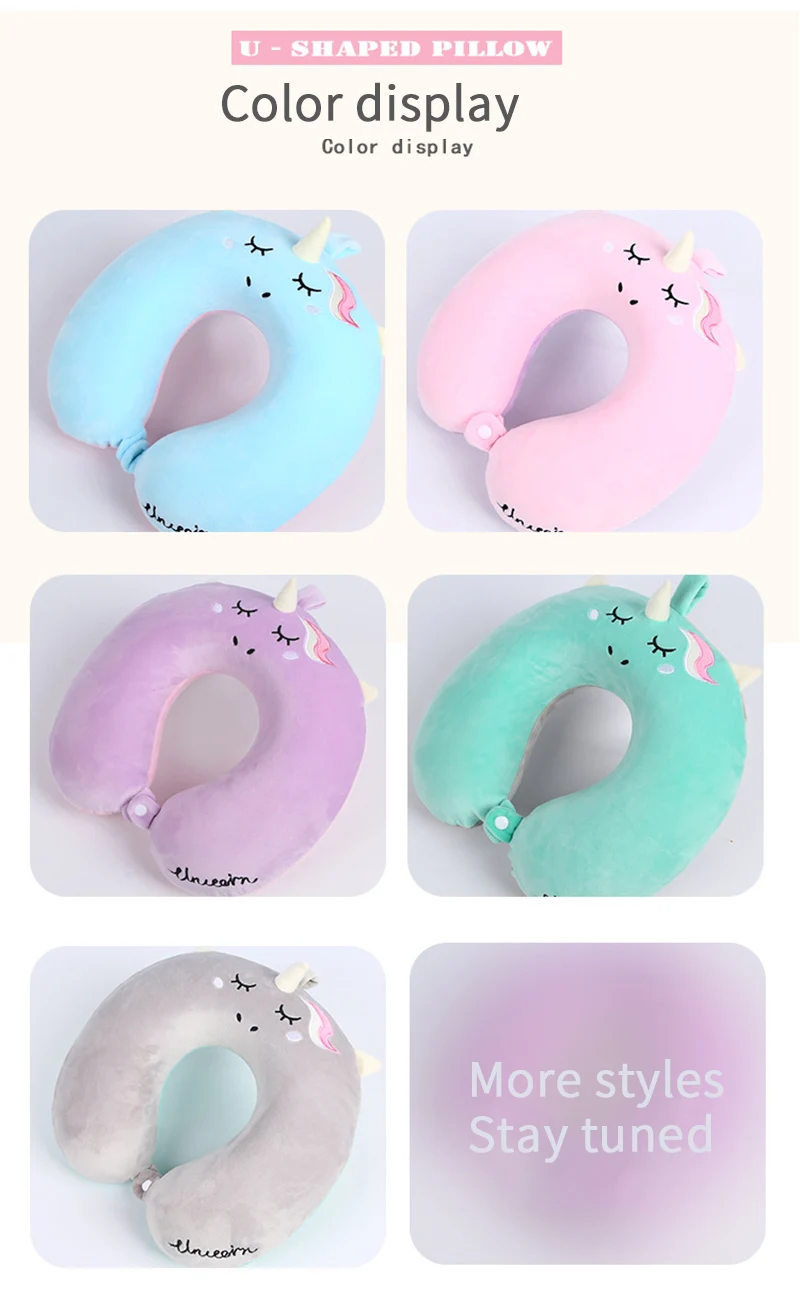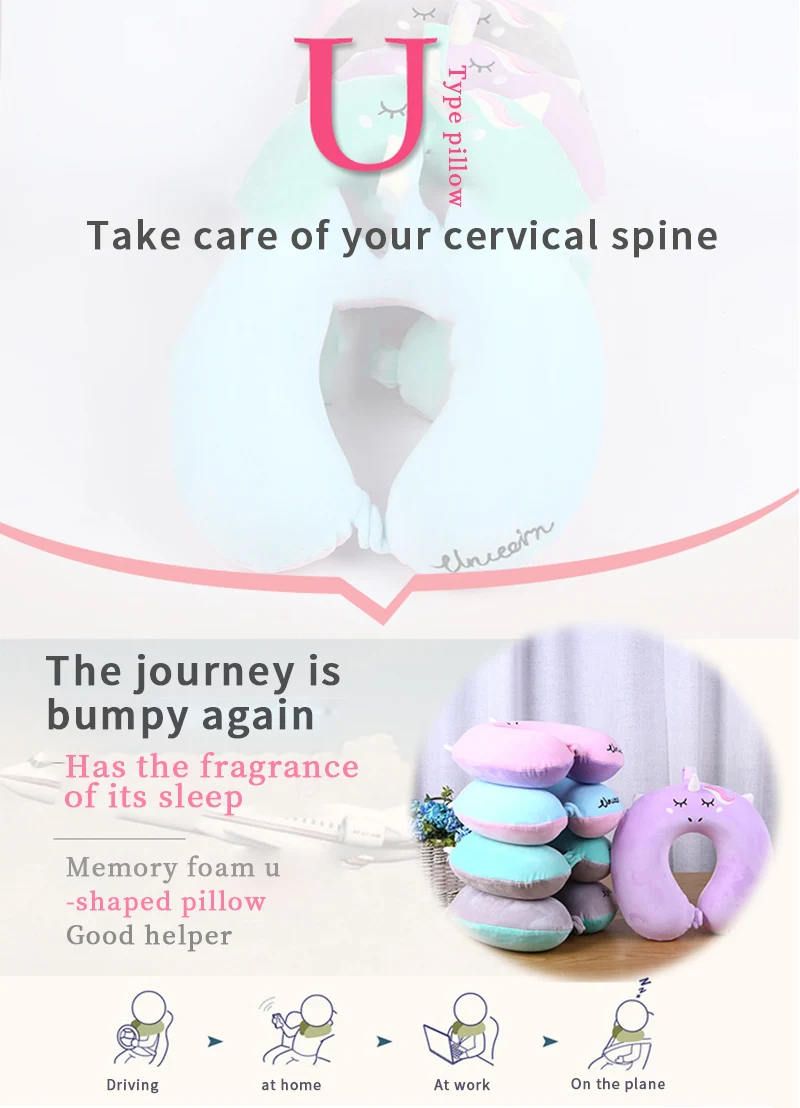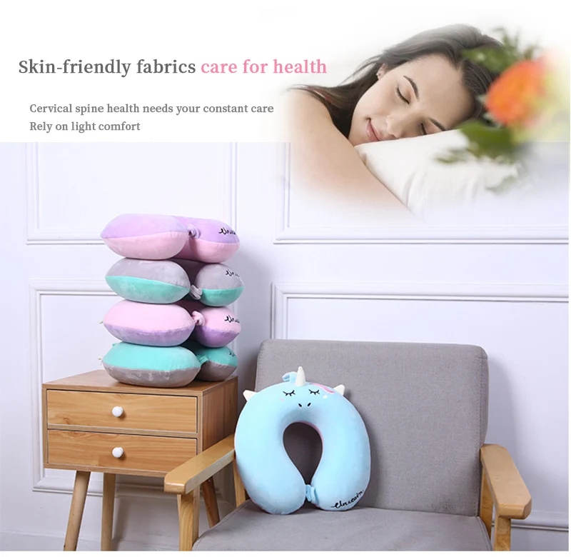 Portable Unicorn U Shaped Travel Pillow Car Air Flight Inflatable Pillows Neck Support Headrest Cushion Soft Memory Foam Pillow