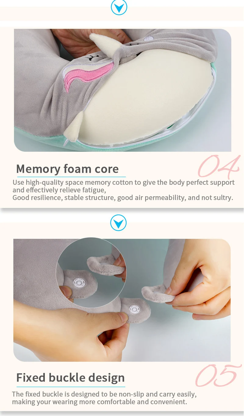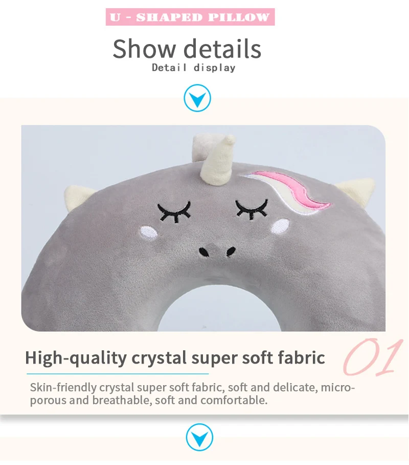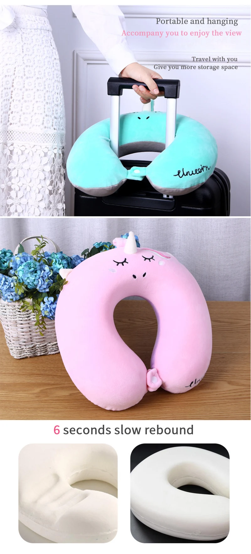 Portable Unicorn U Shaped Travel Pillow Car Air Flight Inflatable Pillows Neck Support Headrest Cushion Soft Memory Foam Pillow