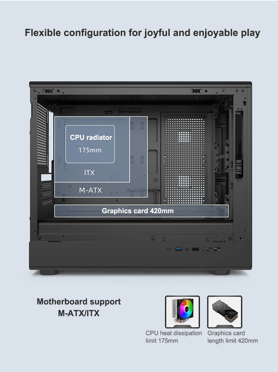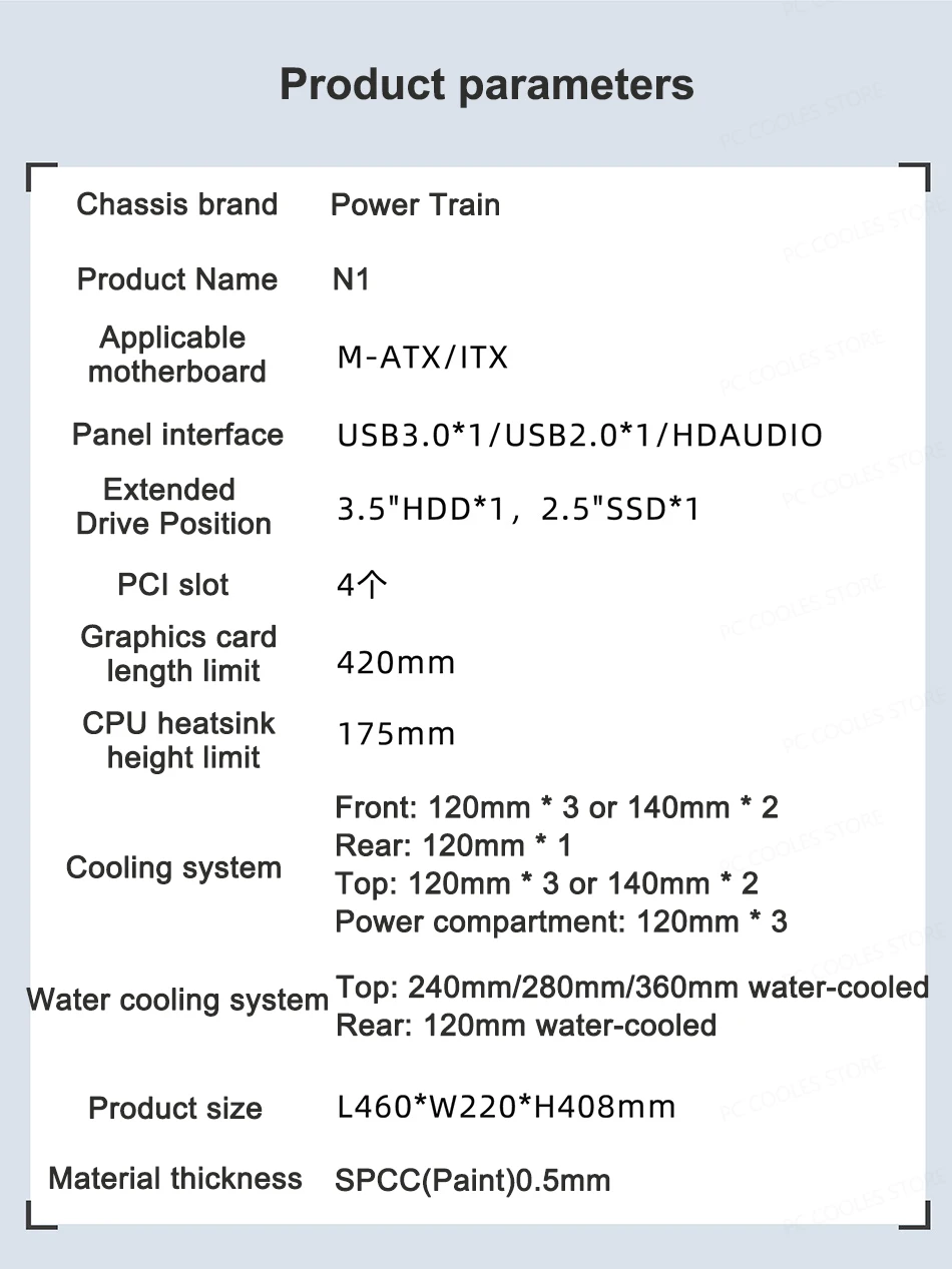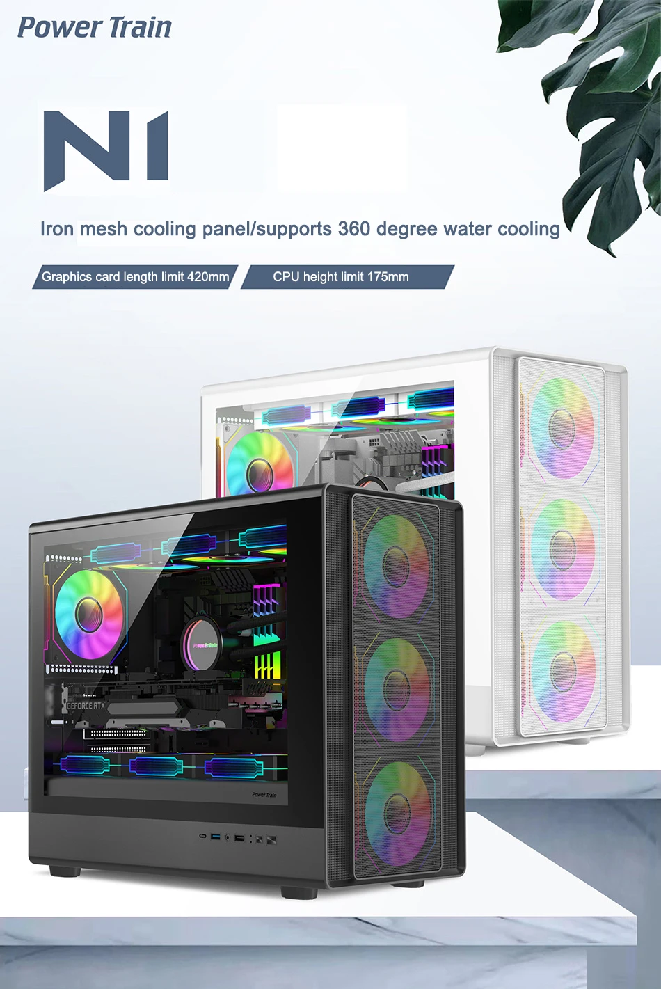Power Train N1 MATX Desktop Case Vertical Glass Side Transparent Host Shell Support 360 Water-Cooled 420MM Graphics Card