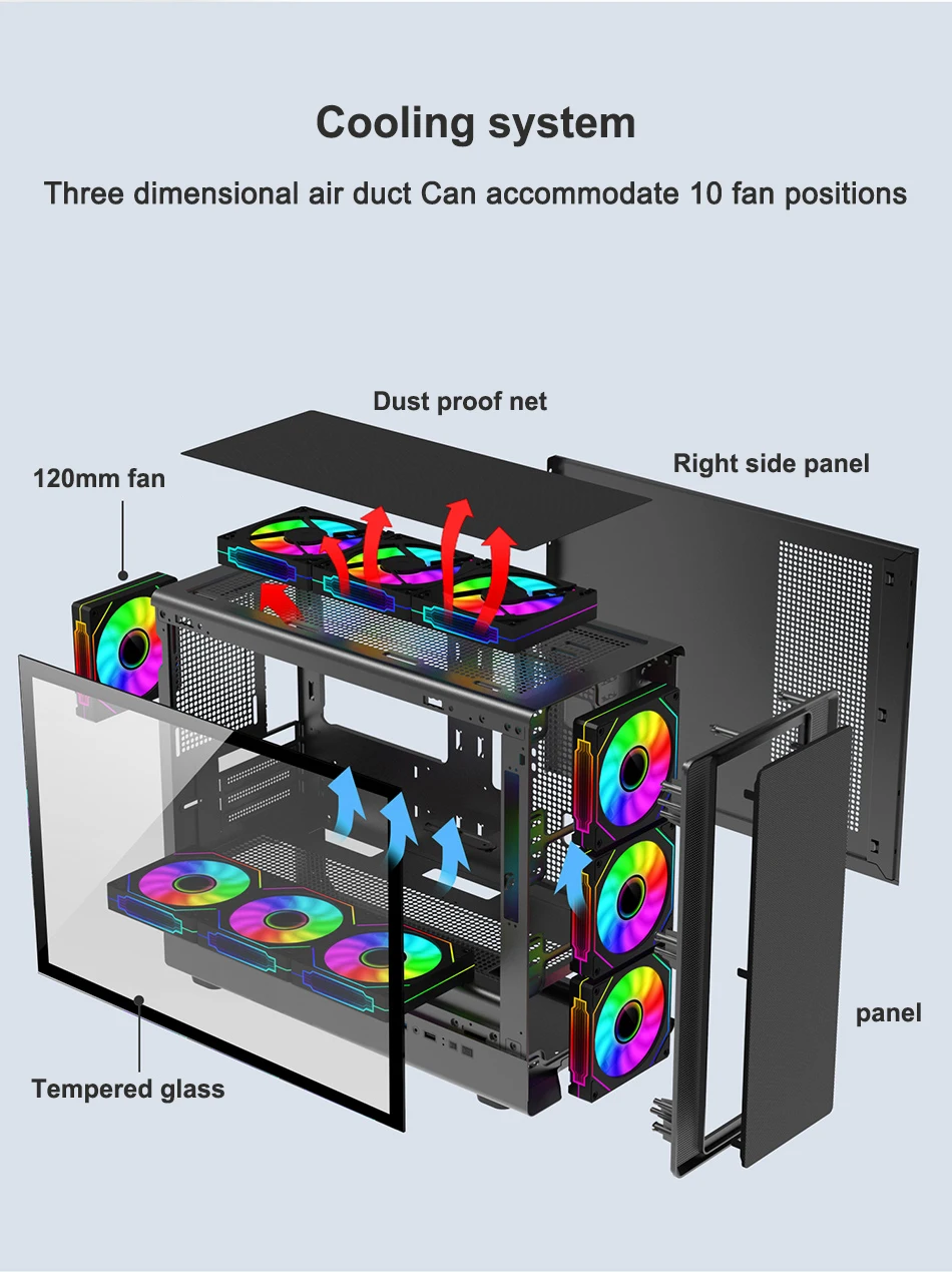 ATX PC case Sea view room computer case desktop glass transparent case base shell bracket