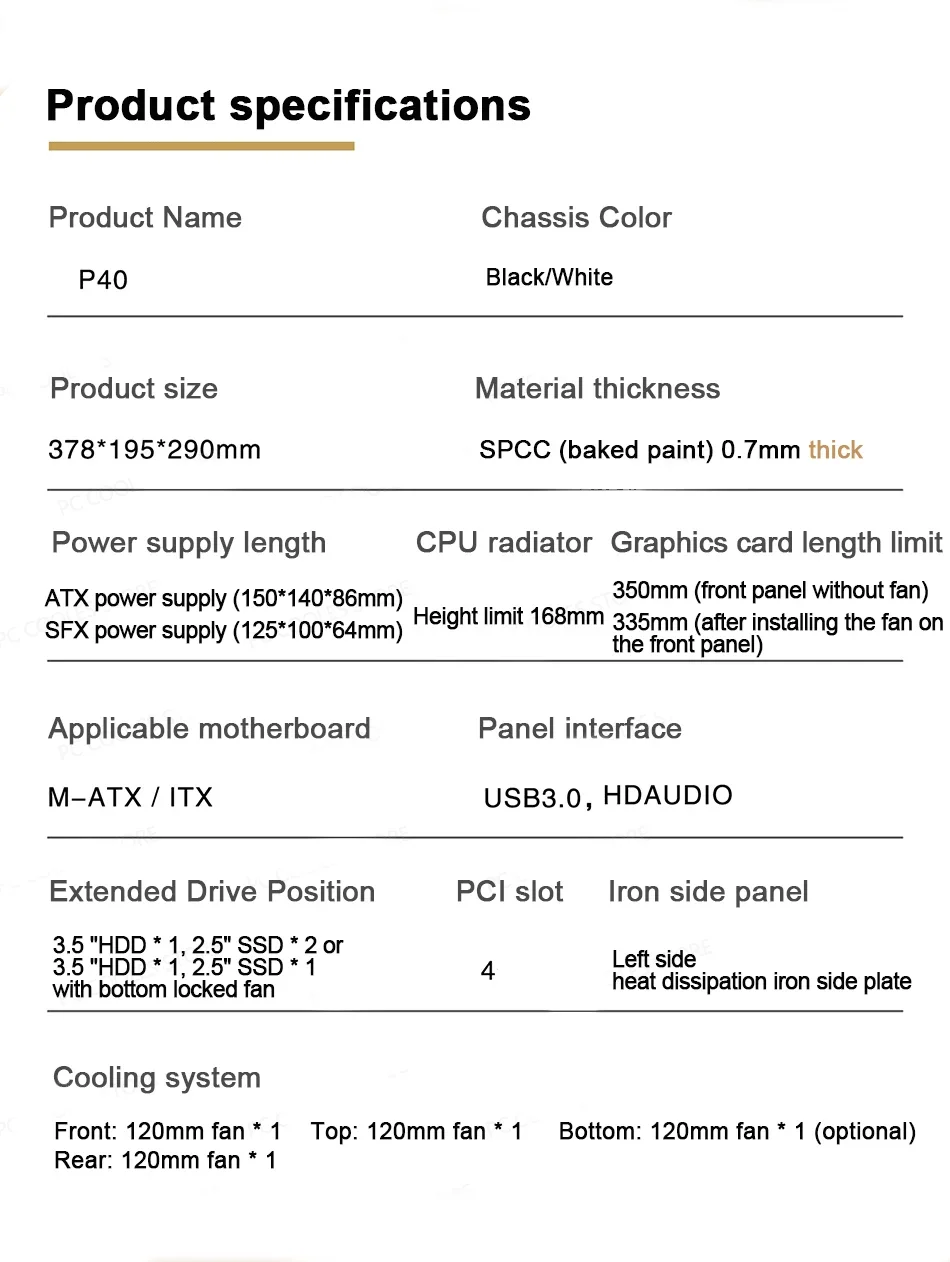 Applicable motherboards: M-ATX/ITX