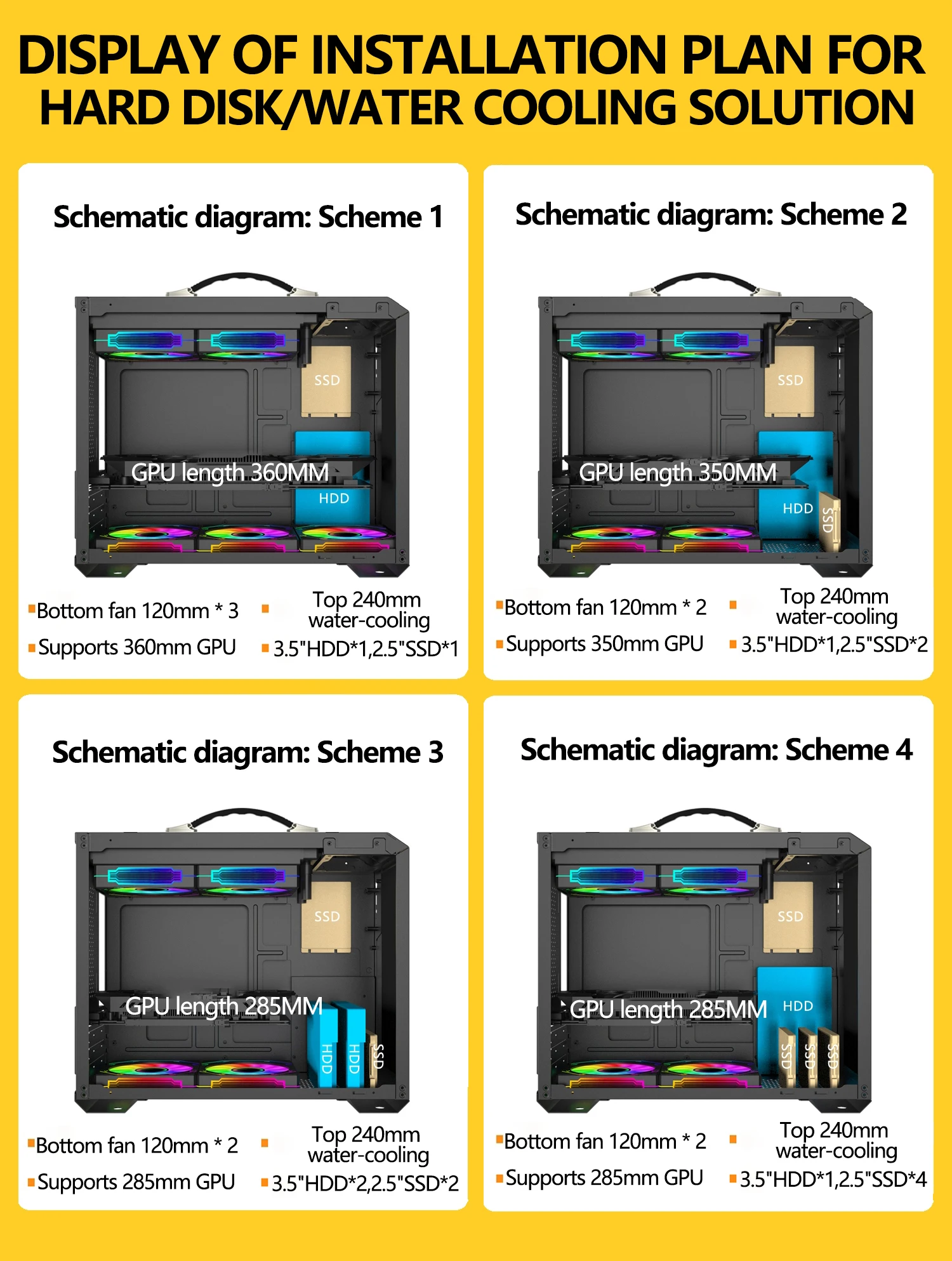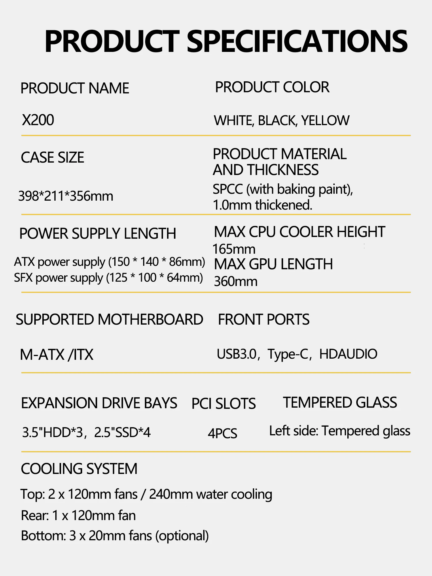 Power Train X200 M-ATX MINI-ITX Portable Computer Case Supports 240 Water Cooling USB3.0 Type-C Desktop MINI Handheld Chassis